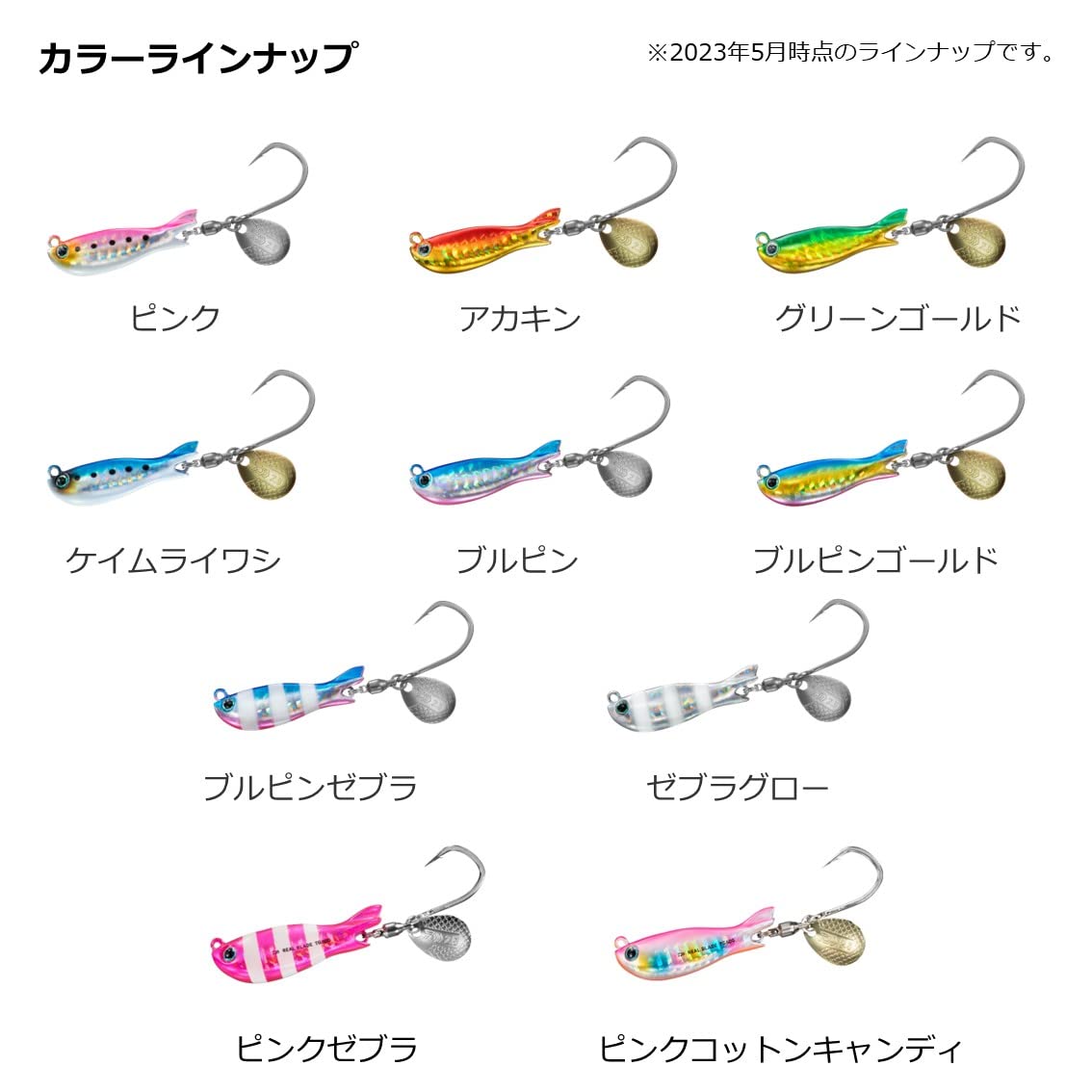 絡まない&安定した泳ぎのテールフィン フックの絡みを防止するために考え出された独自のフィン構造。(PAT.P) フッキングとアピールのコロラドブレード&フック構造 ブレードは、アピール力を考えて薄く、レスポンスの良いコロラドタイプのブレードを採用。 フックは、回転するブレードめがけて突進してきてもしっかりフッキングする新発想の太軸フックを採用。