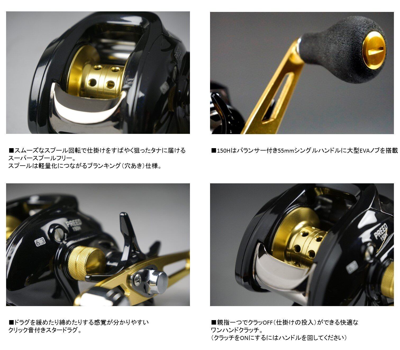 親指一つでクラッチOFF(仕掛けの投入)ができる快適なワンハンドクラッチ。