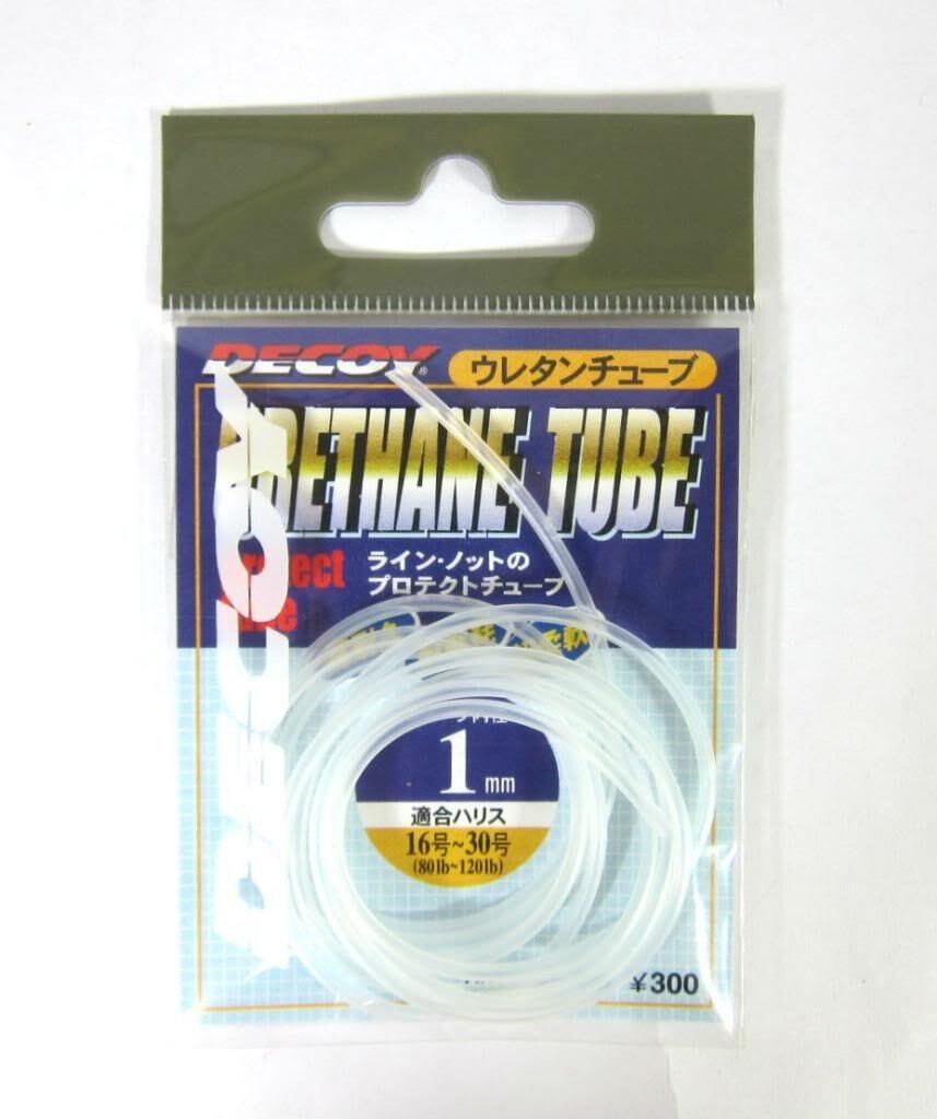リーダー、ノットをプロテクトする高品質チューブ。 リーダーのノット、ルアーへの接触等で負担のかかる部分の強化、保護の為の高耐久、耐摩耗、超柔軟な高品質ウレタンチューブです。 長くとり、チューブを入れて結束することで、タチウオ等の鋭い歯をもつ魚からリーダーを保護できます。
