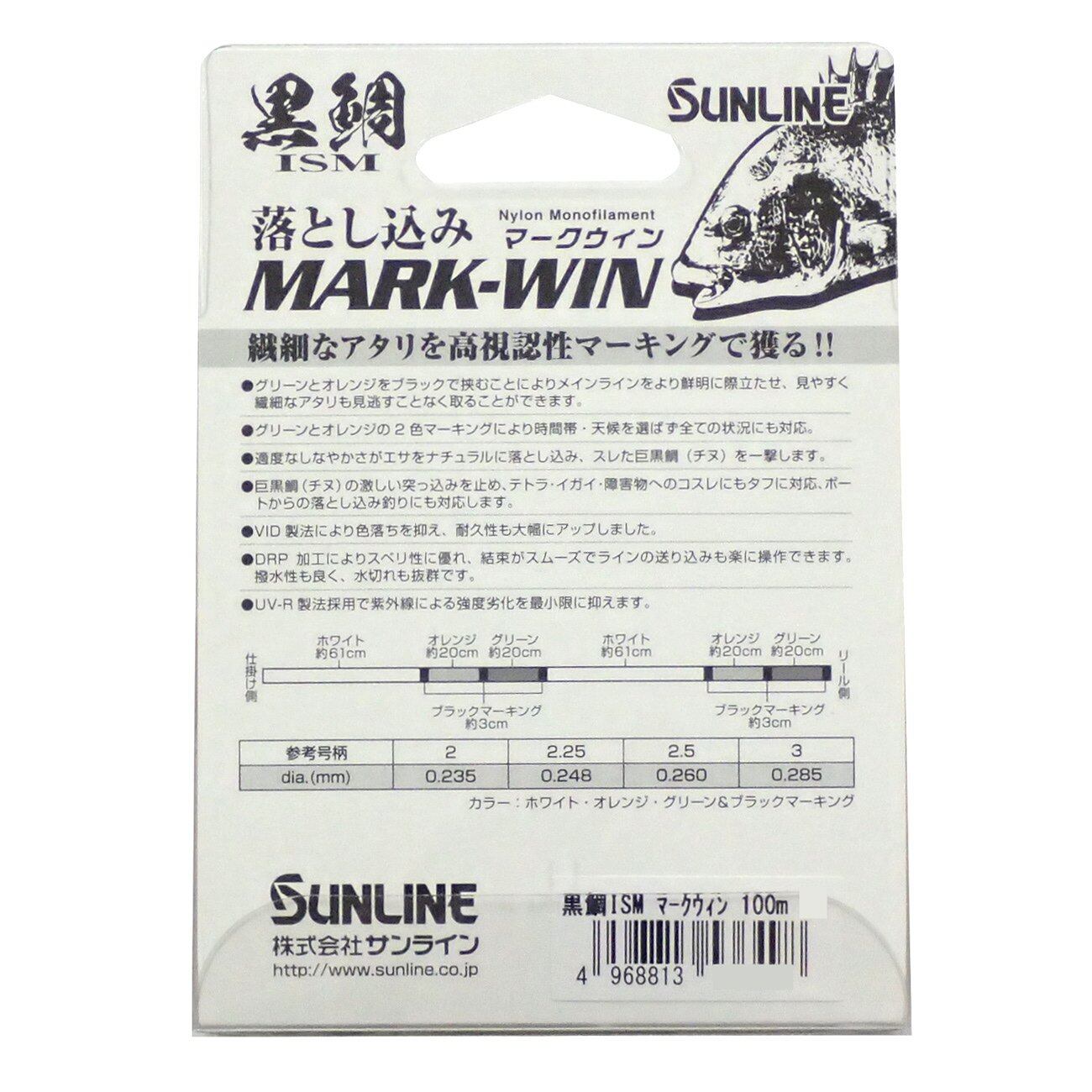 サンライン(SUNLINE) ナイロンライン 黒鯛イズム 落とし込み マークウィン 100m 3号 ホワイト&ブラック&エキサイトオレンジ&ミエールグリーン