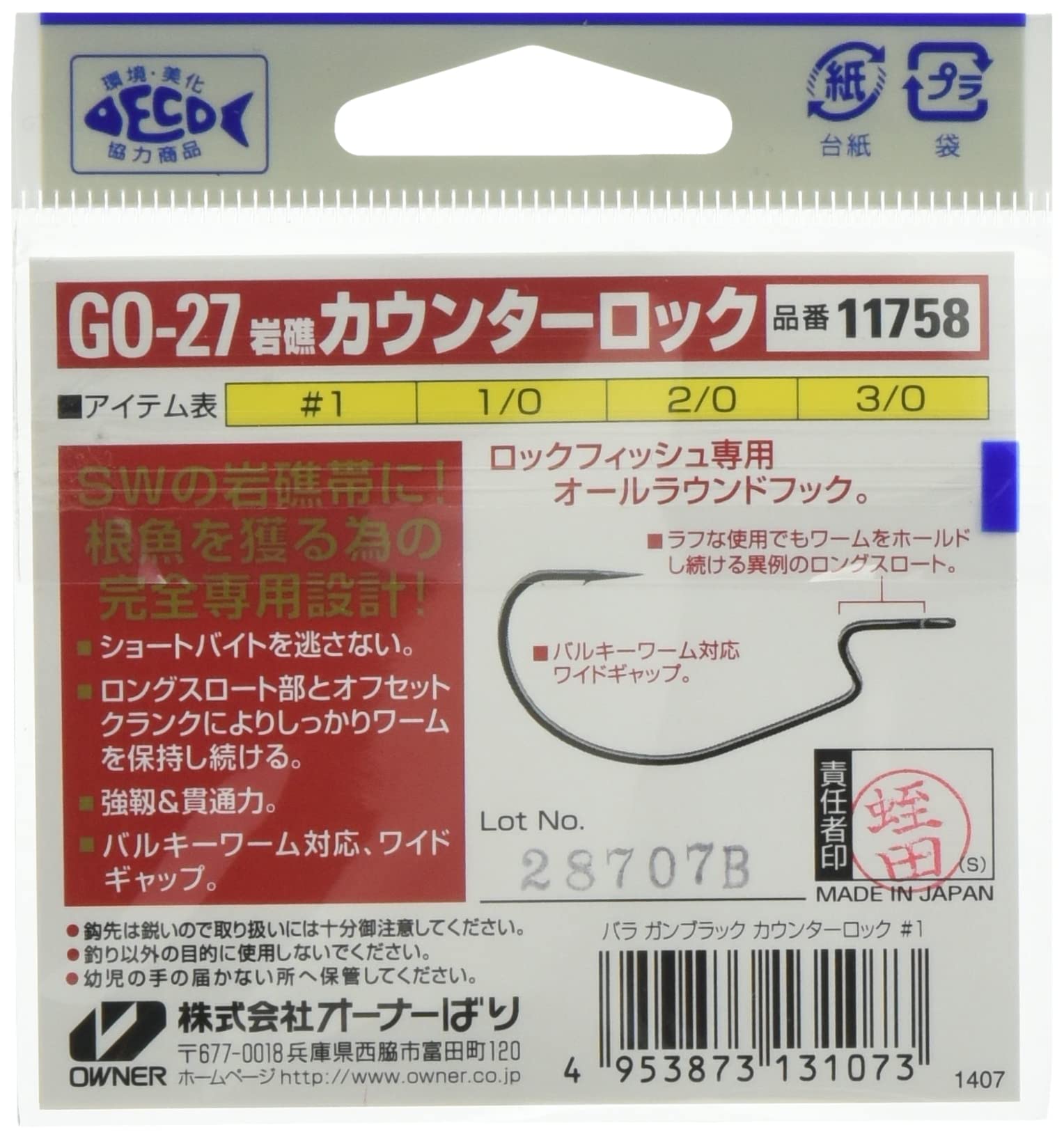 オーナー 岩礁カウンターロック GO-27 (ワームフック)