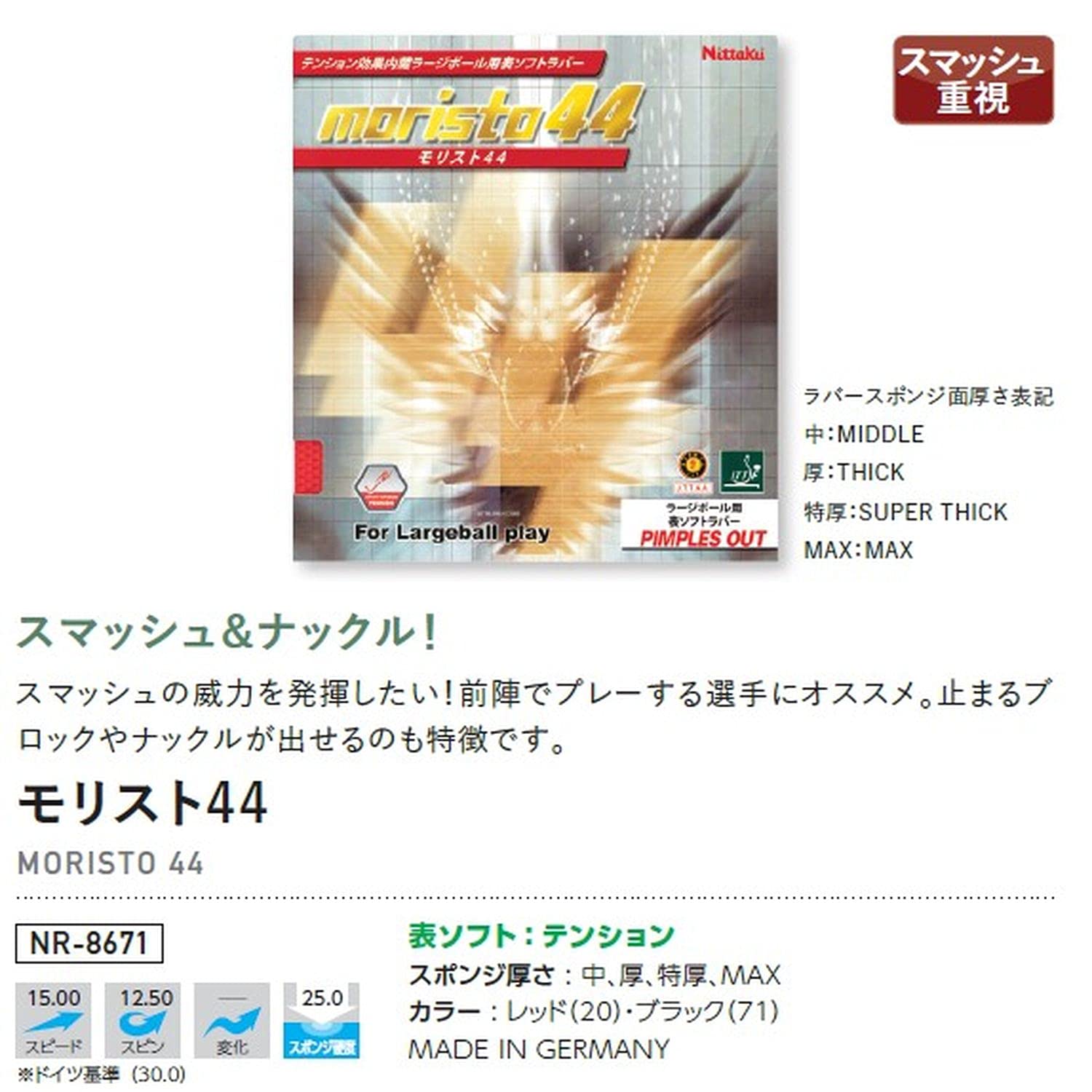 ニッタク(Nittaku)卓球ラバー モリスト44 NR8671 レッド MAX