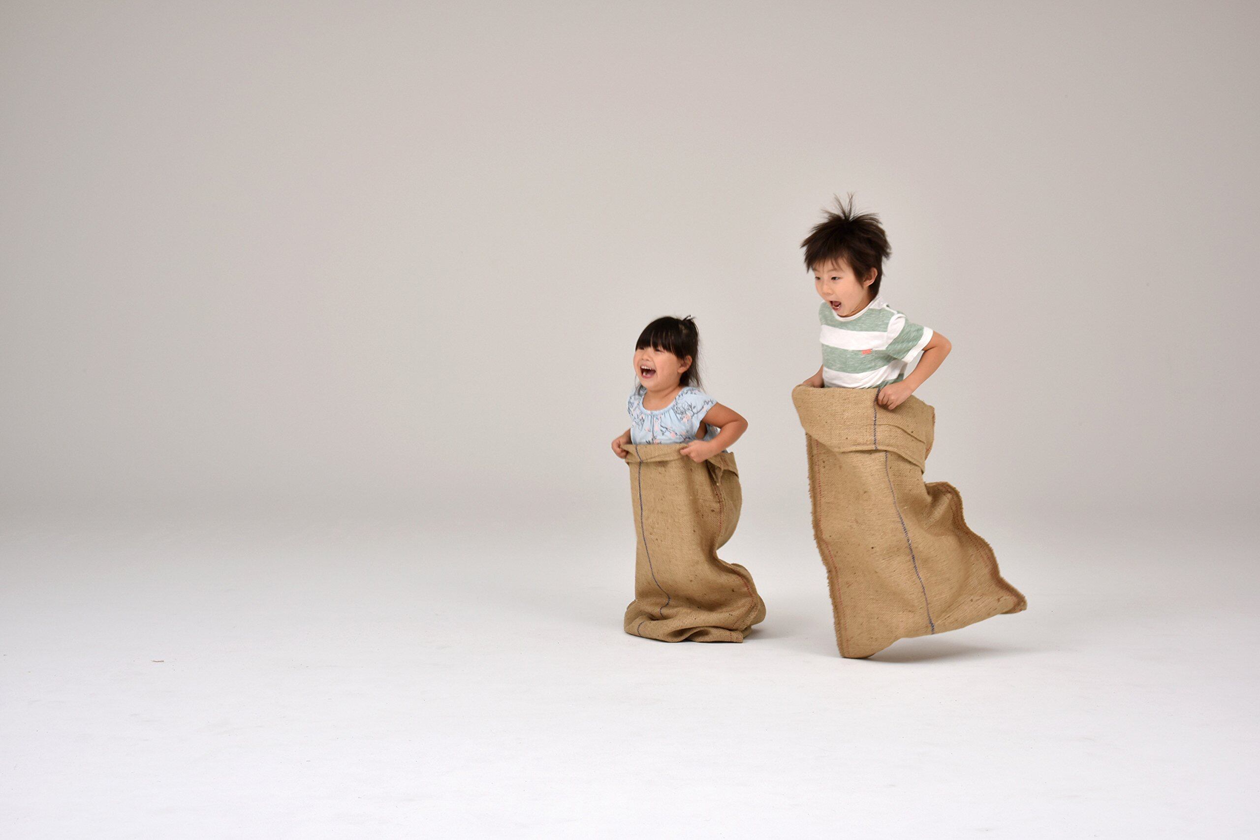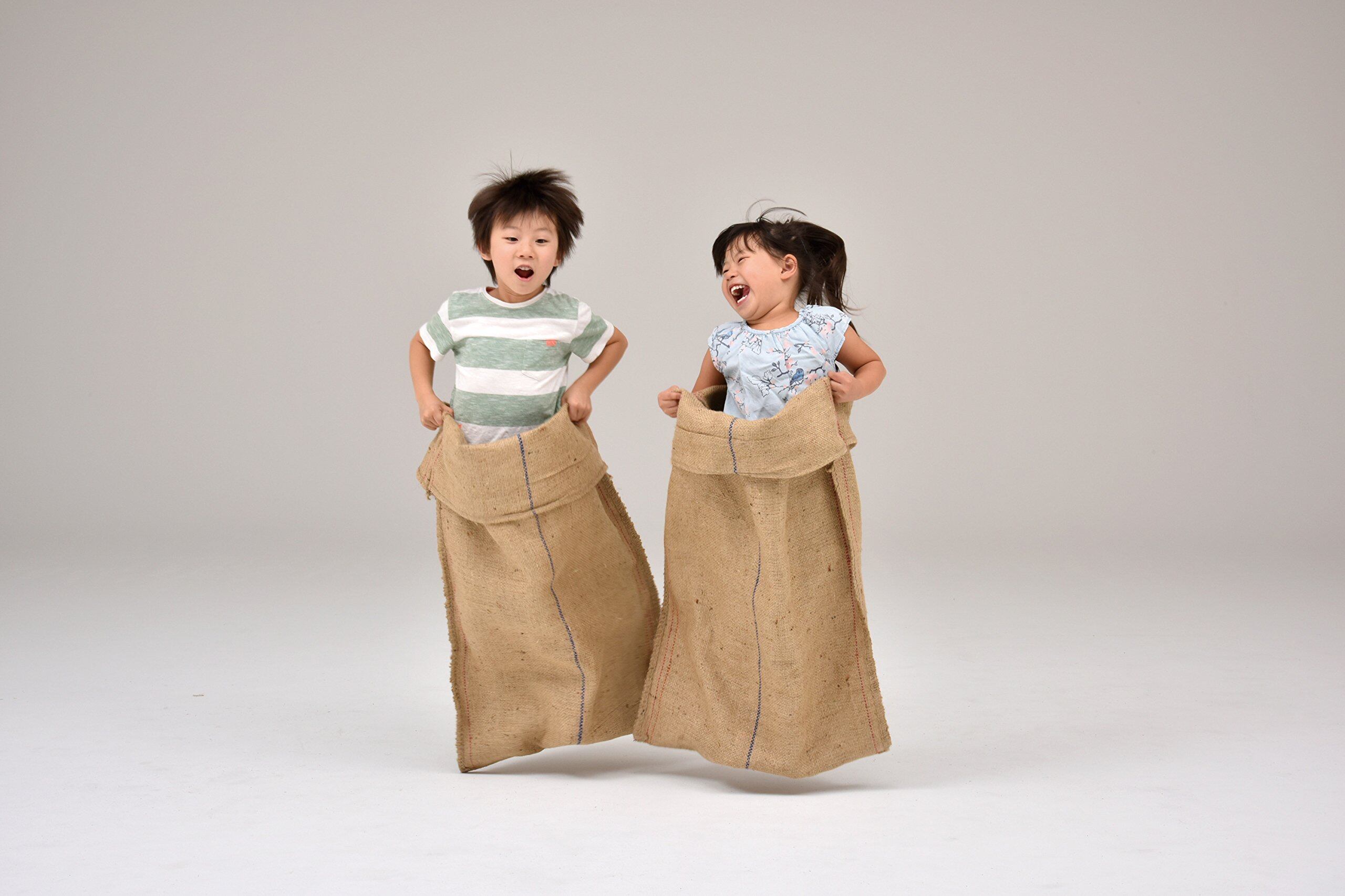 軽くて丈夫な麻袋でピョンピョンジャンプ