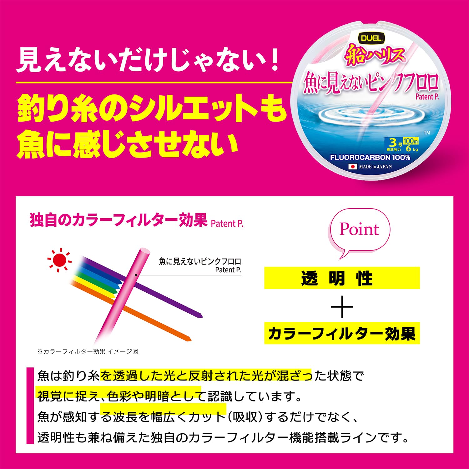 【限定セール】デュエル(DUEL)魚に見えないピンクフロロ 船ハリス 100m 2~16号