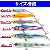 デュエル(DUEL) ハードコア モンスターショット(s) シンキングペンシル65mm/80mm/95mm/110mm/125mm/140mm (青物 ヒラメ サワラ シーバス マゴチ サゴシ) 遠投