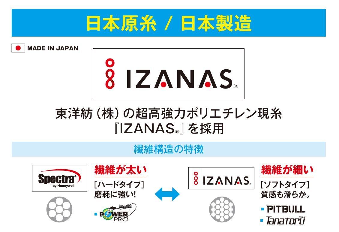 日本原糸・日本製造の高強度、低伸度PEライン