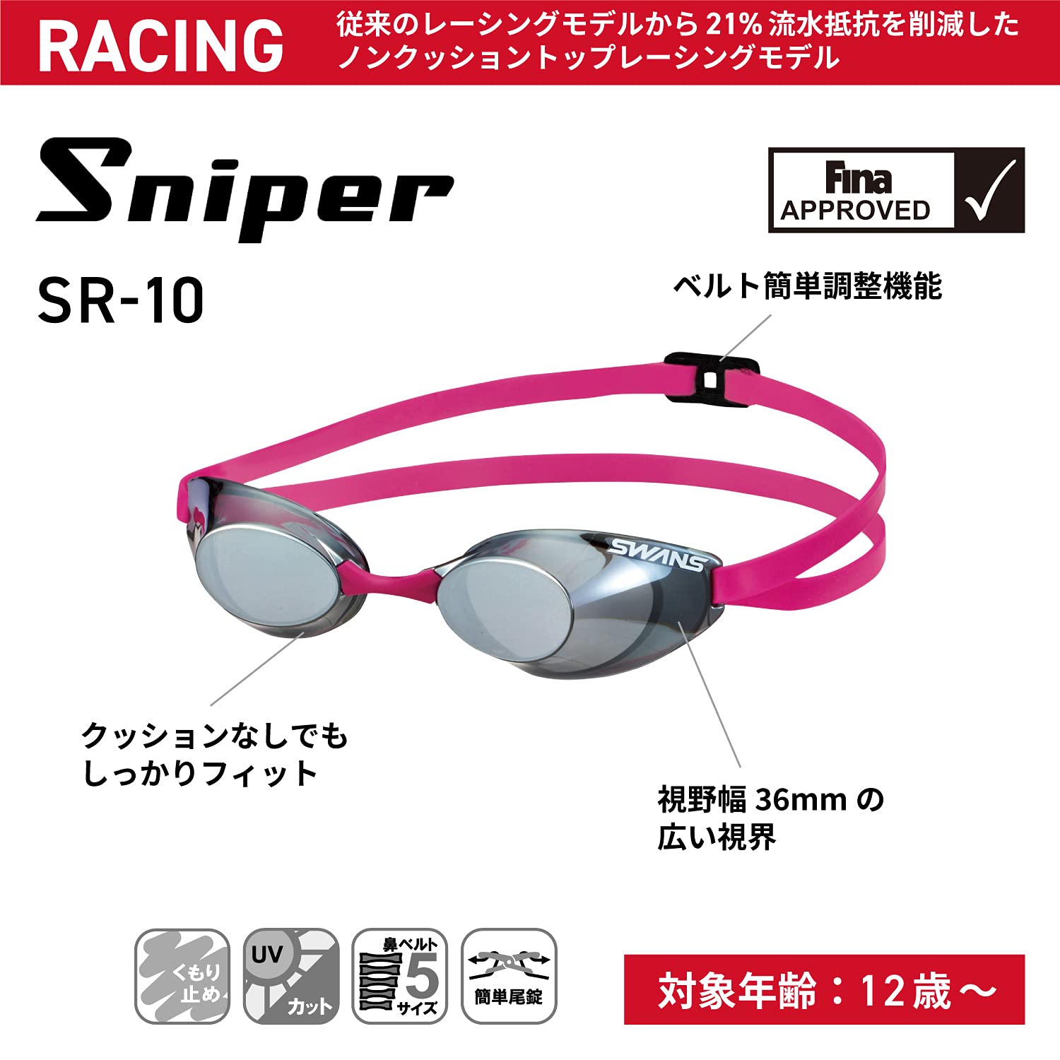【新装セール】SWANS(スワンズ) 日本製 スイミングゴーグル スナイパー Sniper SR-10 レーシング ノンクッション 12歳~大人用 Fina認証承認モデル