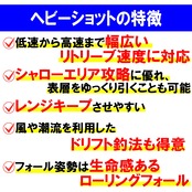 ■極小リップがしっかり水を掴んで、水面直下のハイスピードリトリーブができる!■バイトを誘発する前進しながらのローリングフォール(シミーフォール)。■逆風でも負けない圧倒的な遠投性能。