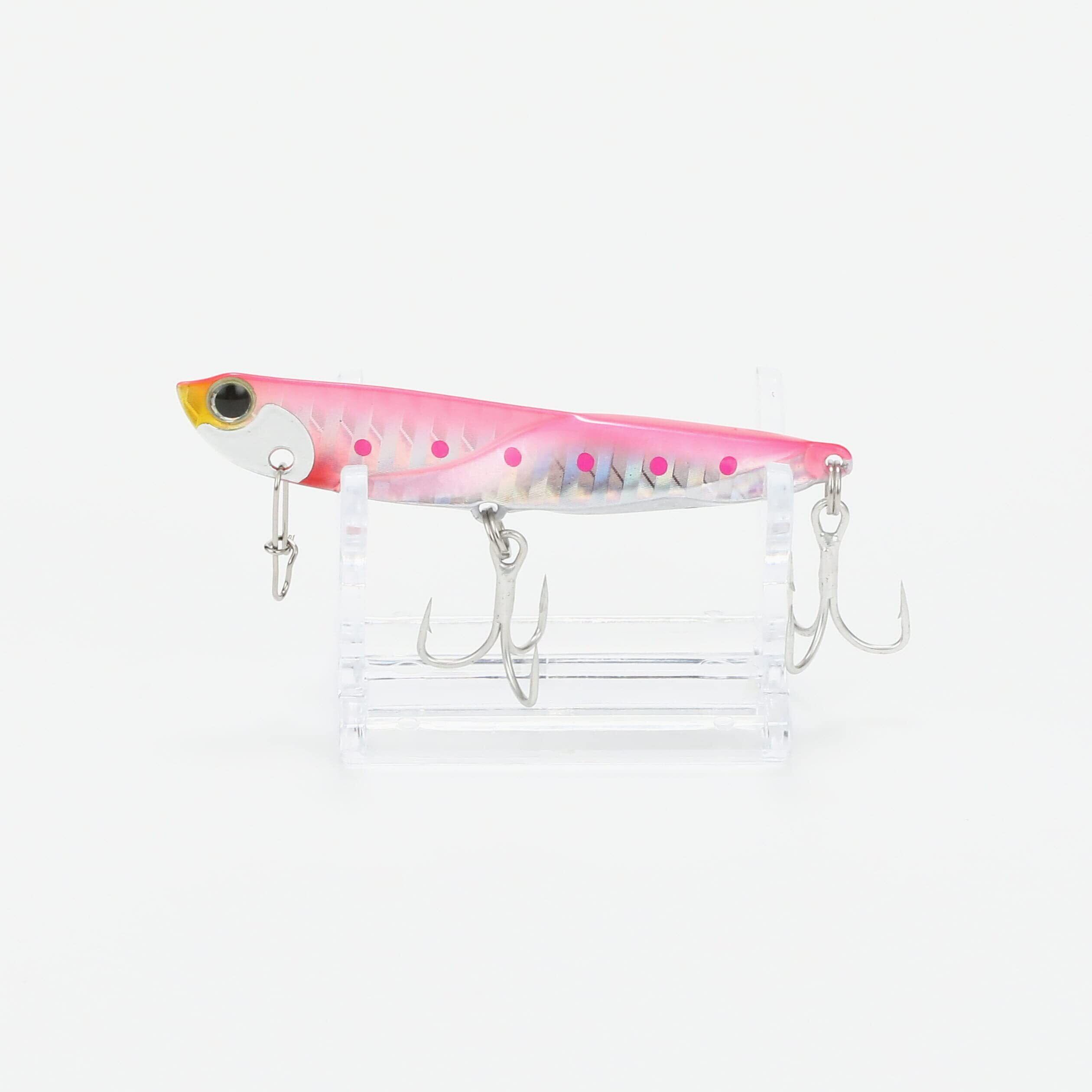 まさに飛び過ぎ! サーフや港湾、河川、磯など、あらゆるフィールドをカバーできるサイズ。対象魚もヒラメやシーバス、コチ、青物など、ほぼ全ての中型フィッシュイーターが狙えます。持ち前の飛距離をいかし、より広いエリアを攻略。自重の数値から想像される飛距離のイメージ以上に飛びますので、『距離は出したいけど浅い』『距離は出したいけどベイトが小さい』など、求めている飛距離とレンジやベイトサイズが合わないような歯がゆいシチュエーションでも攻略が可能です。アクションはかなり激しいワイドウォブリングアクションなので、水中での存在感は抜群。魚影が 薄いコンディションでも魚達にその存在が気づかれやすく、広い範囲の魚にアピールできます。フリーフォールでは素早くボトムを取ることができ、カーブフォールではローリングしながらのフォールで誘います。オールレンジ対応なので、後方からのバイトはもちろん、下からの突き上げるようなバイトや横から回り込んでのバイトなど、あらゆるバイトに対して高いフッキング率を得られるよう、テールのみではなく腹部にもトレブルフックを設置しています。