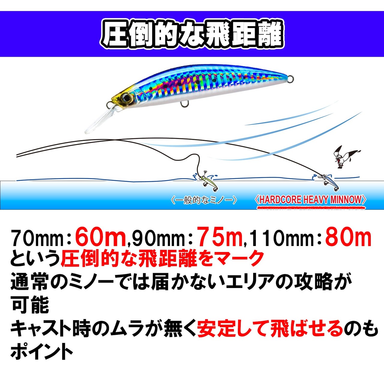 低速から高速リトリーブまで幅広く対応 重量級ぶっ飛びミノー!