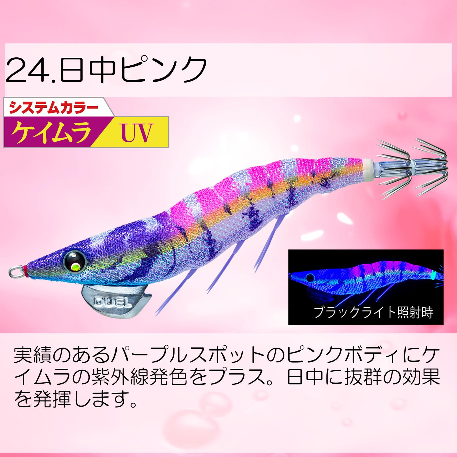 EZ-Qシリーズ史上、最強アピールの色と柄!! ●軽快ダートはそのままに「波動」「色」「音」で高活性のイカに、トリプルアピール!●色:全20色の色がスゴイ!!●音:アピール抜群のエビ音搭載!!●波動:パタパタフットライトの釣れる波動でアピール!!