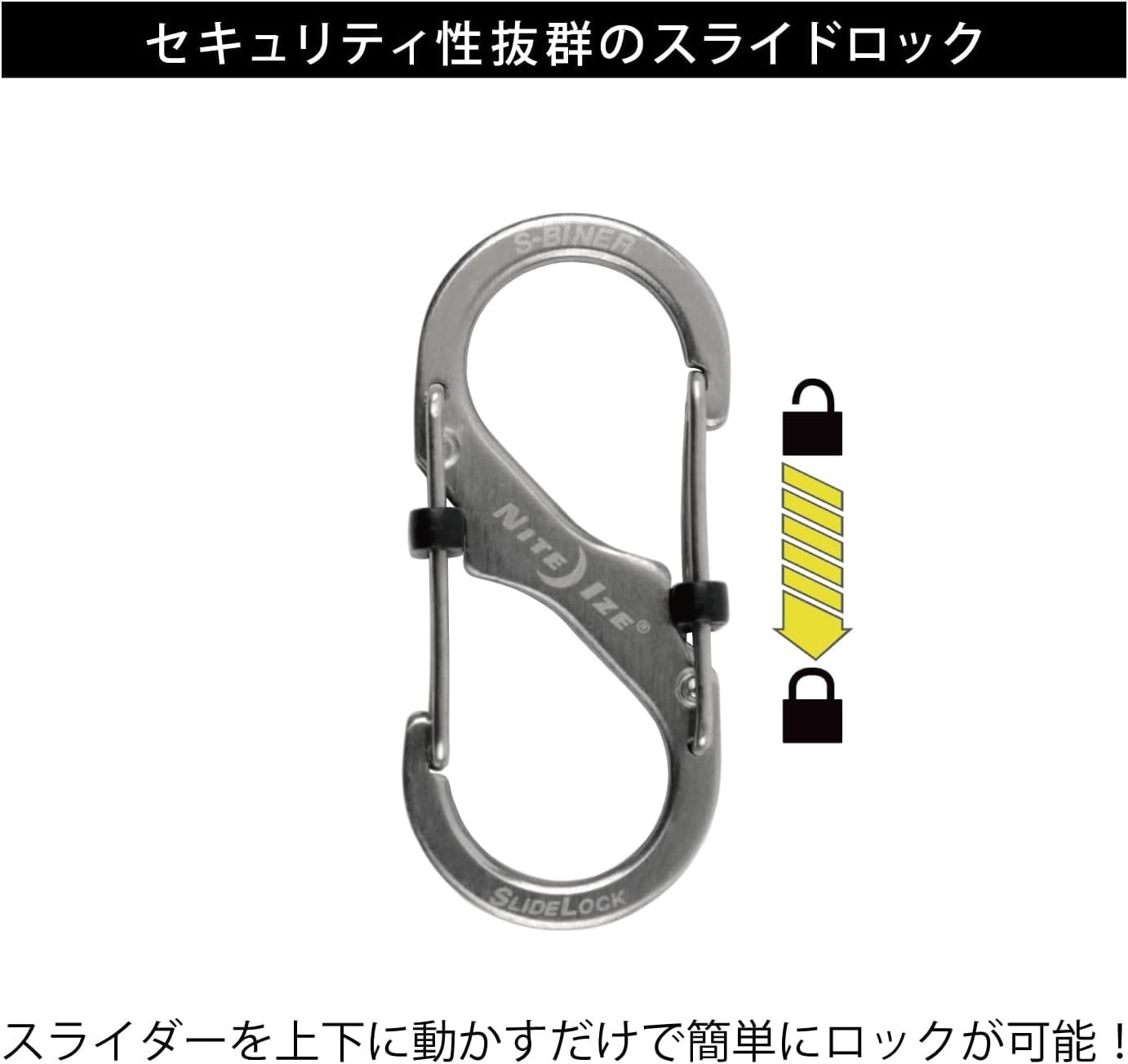 ナイトアイズ(NITEIZE) エスビナー スライドロック#2 S字 カラビナ ロック付き ステンレススチール