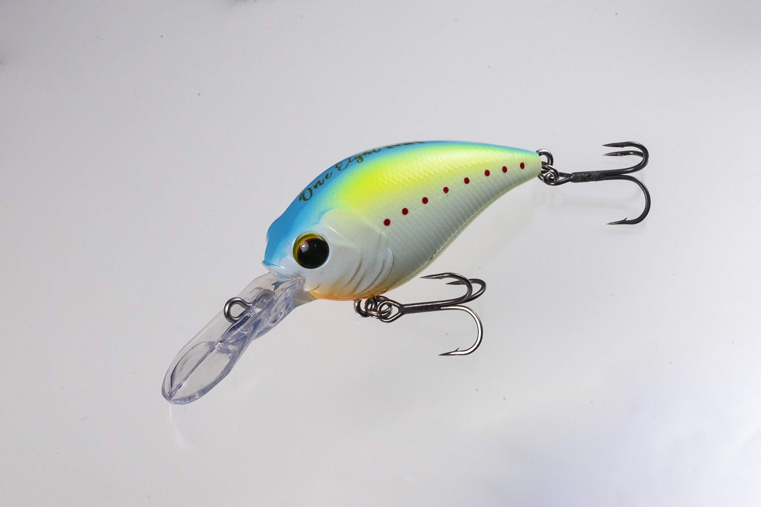 開発コンセプトはSRと同じく中層早巻きを意識し水深1.5mレンジを攻略するための設計となっています。平行に近いスイム姿勢、早巻きにも対応するレスポンスの良いアクション。追わせるスイッチを入れる、ショートバイトも絡め取る。と言ったクランクベイトに必要不可欠な要素がワンエイトシリーズには盛り込まれています。