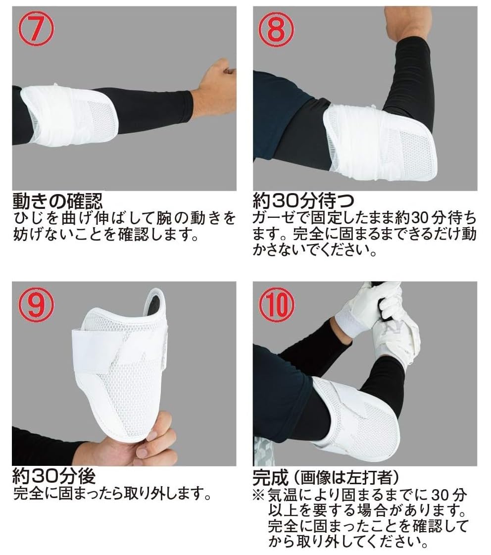 【注意】:プロテクター本体は空気に触れてから約10分で硬化が開始しますので、成型直前まで袋を開封しないで下さい。