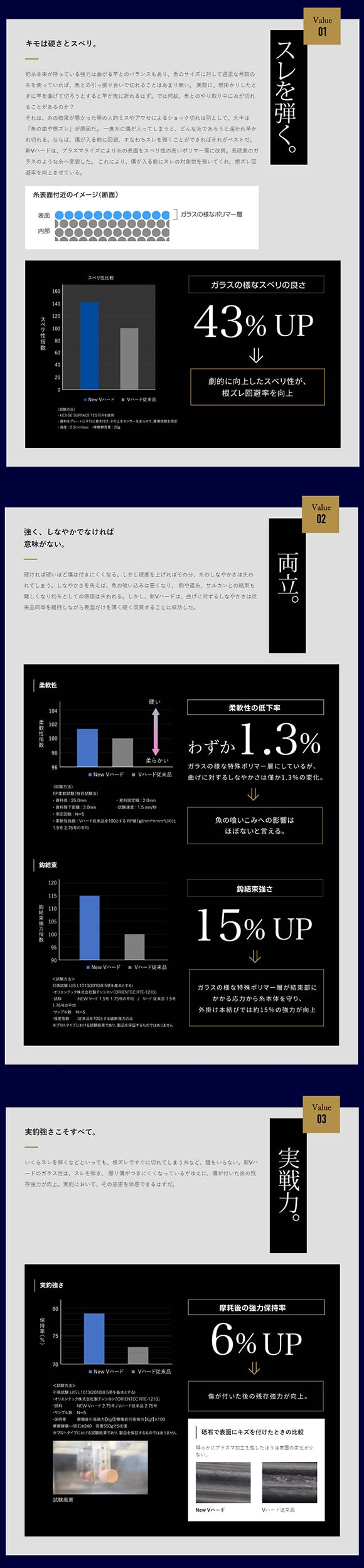 手に取った時に感じる強さ・釣り上げた時に確信する強さ。100%切れないことは不可能ですが、確実に「Vハード」は進化しています。