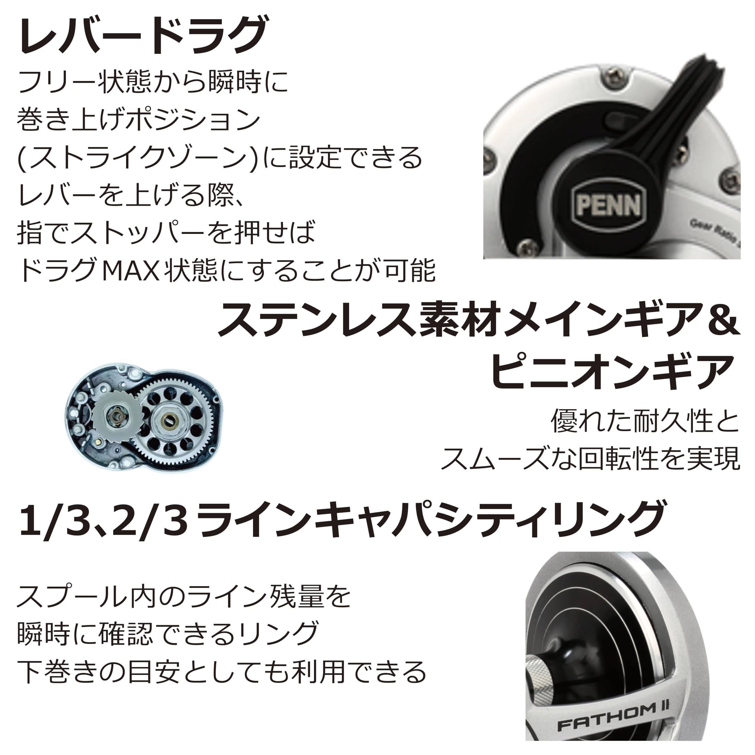 PENN(ペン) FATHOMII ファゾム2 ノーマルモデル / 2スピードモデル 各種 オフショア ジギングリール
