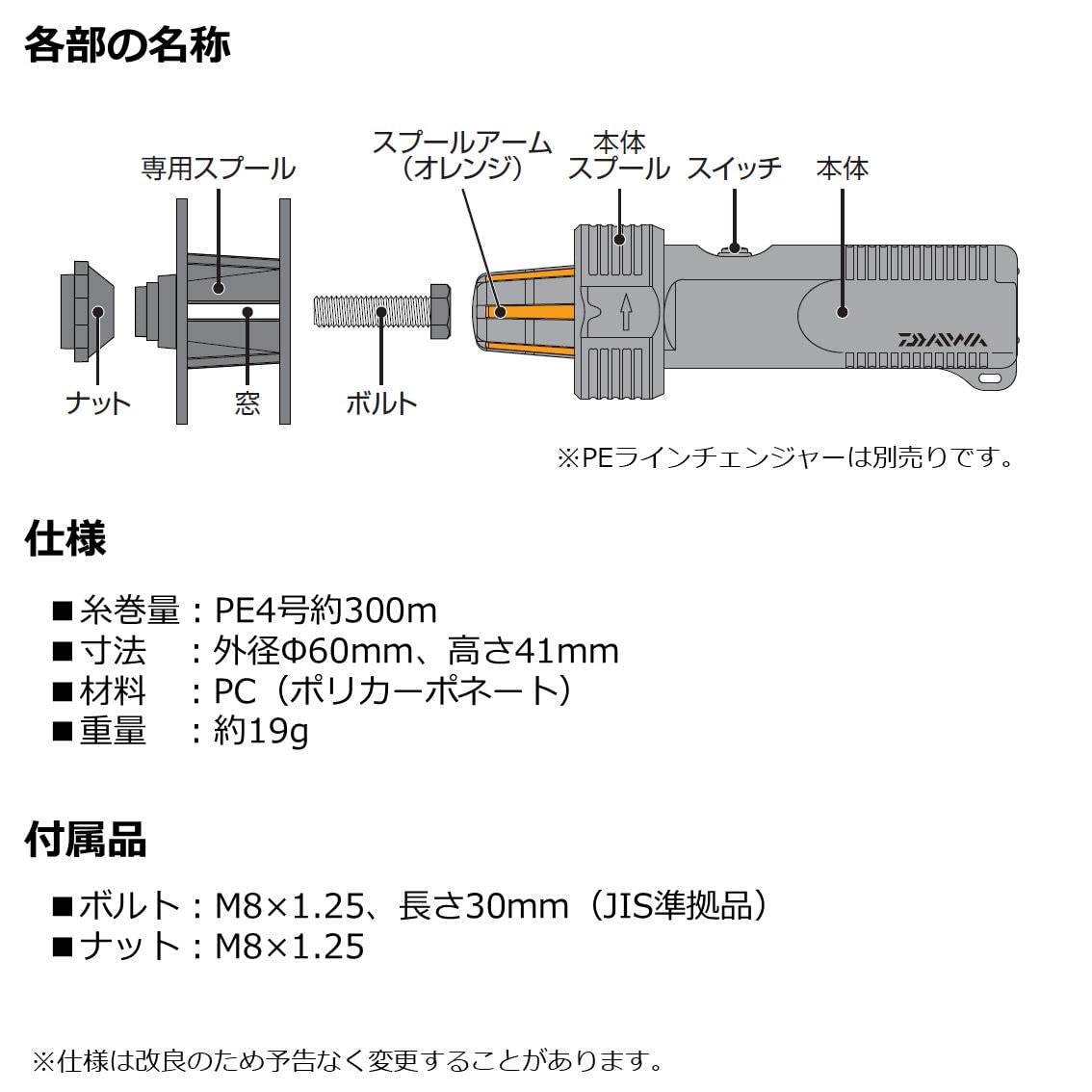 参考糸巻量:PE4号約300m