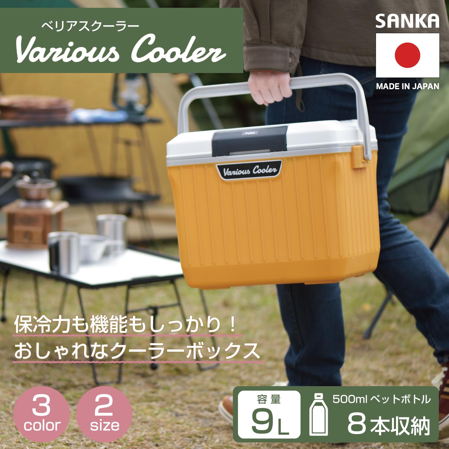 【新装セール】サンカ べリアスクーラー 高性能な断熱材を採用 ワンプッシュオープン型クーラーボックス 9L 小型 イエロー 保冷力の高いハードタイプ 蓋が外せてお手入れ簡単 作業台にもなるフラットなふた 2人で持ち運べる大きな持ち手 ショルダーベルト付き 釣り ミニクーラー cooler box 冷藏箱 SANKA VAC-9WH/YE | ももくま屋さん