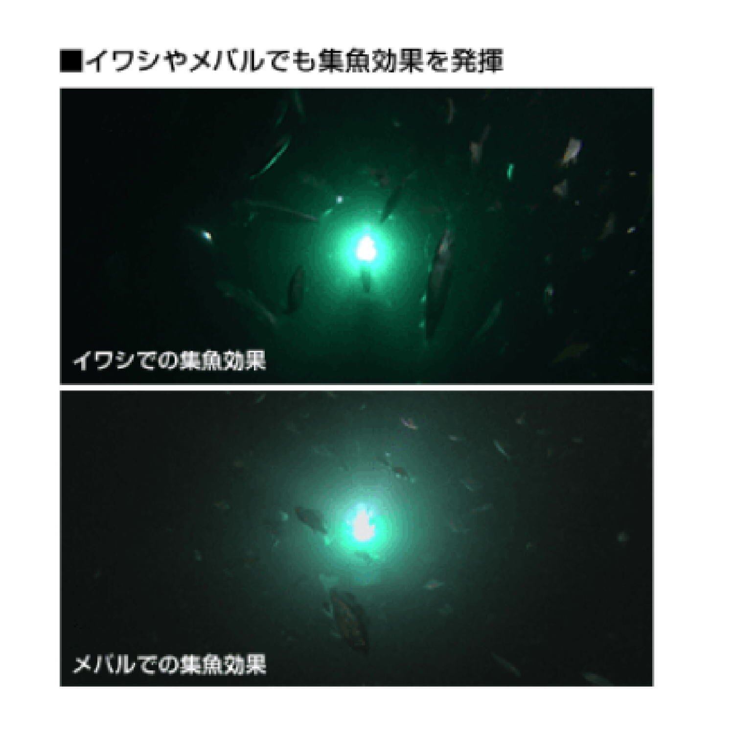人気の水中集魚灯に光りの「1/fゆらぎ」(AUTO)モードを搭載したLEDバージョン。白色LEDでエサを寄せ、魚が最も反応する500nmのLEDと「1/fゆらぎ」で魚の摂餌行動を刺激確かな釣果への近道となります。