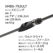 全長:7'9フィート (約236.2cm) / 継数:2本 / 自重:61g / パワー:UL / テーパー:ファースト