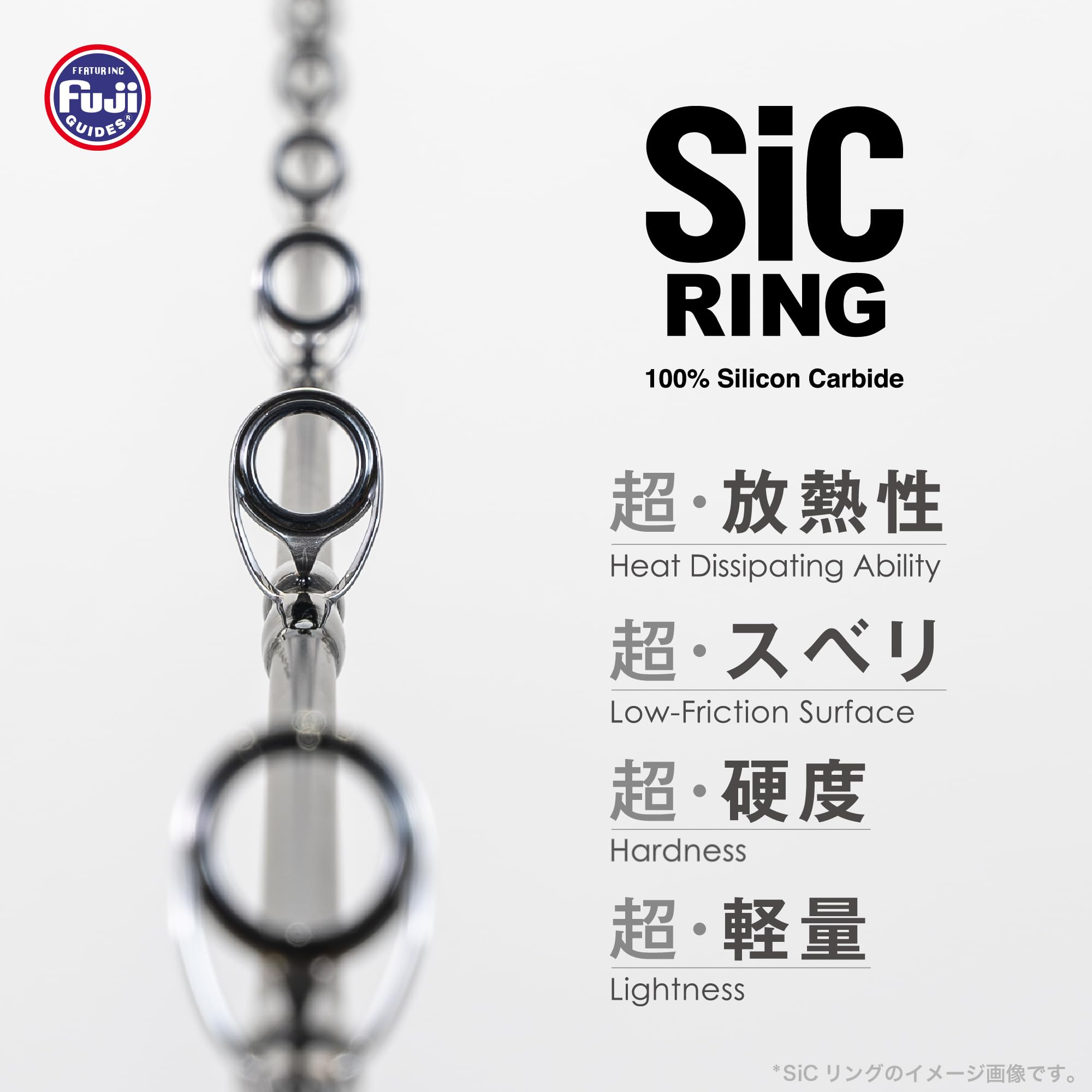 搭載機能: 「ガイド SiCリング (ALL)」「ラバー製エンドグリップ」「ウッドマテリアルリールシート」「コルクグリップ」「ダブルナット」「カーボンチューブラ」
