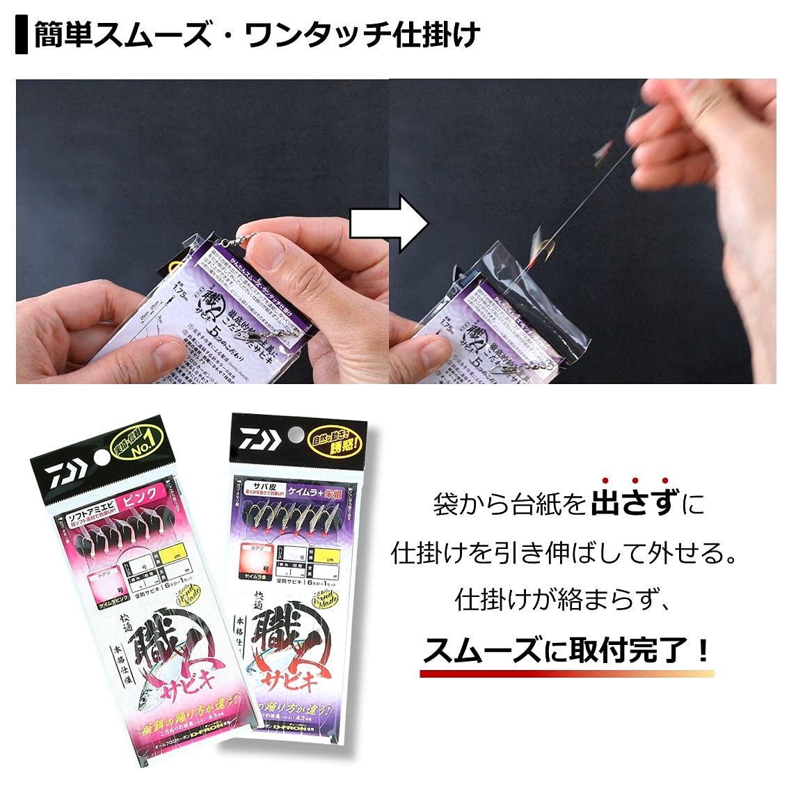 ダイワ(DAIWA) 快適職人サビキ ソフトアミエビ/サバ皮 6本 ピンク/ホワイト/ケイムラ 各種