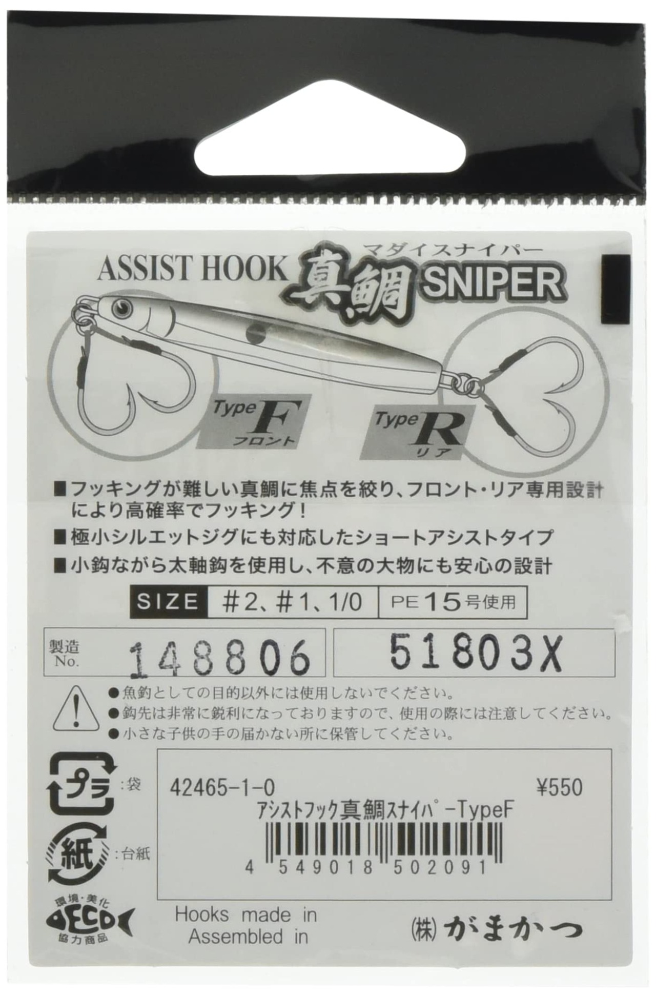 がまかつ(Gamakatsu) アシストフック 真鯛スナイパー TypeF #2 GA-031