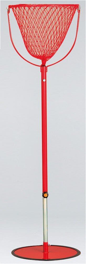 サイズ=ベース直径45cm×高さ110~150cm●自重=3.3kg●「カラーをご指定ください」90=白、100=赤●材質=スチール●ベースゴム枠付●リング直径43cm●ネット付●日本製※支柱を支えてご使用ください。