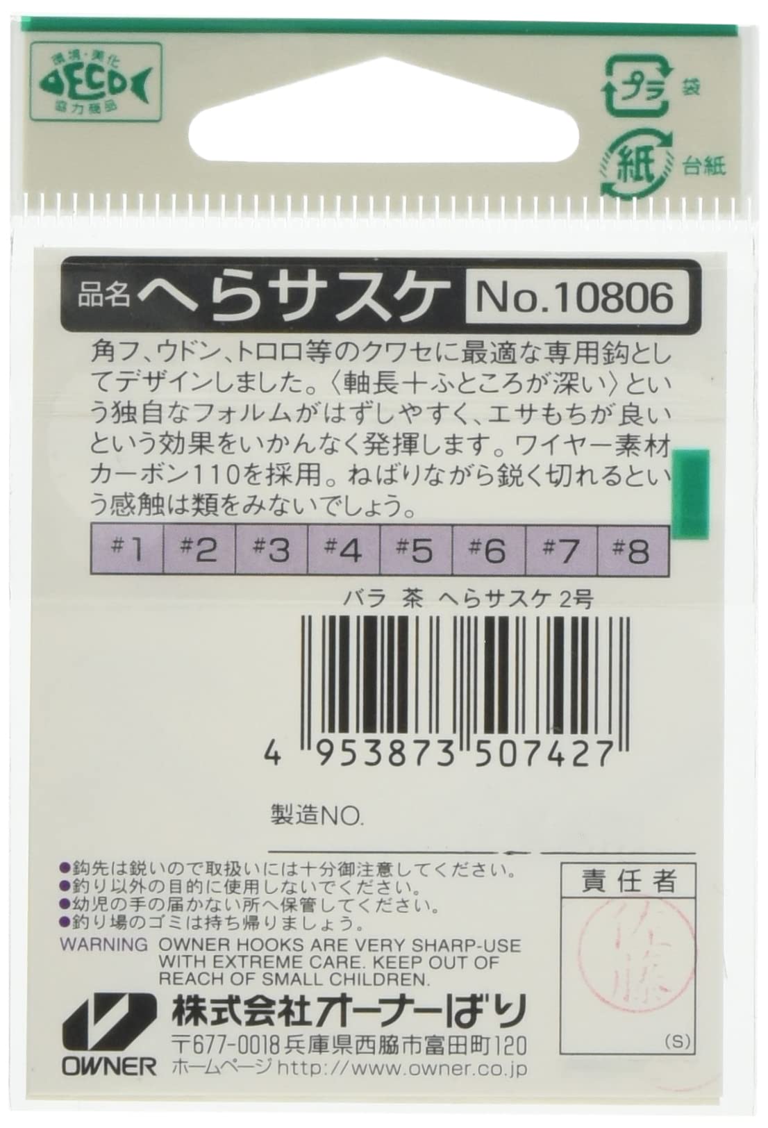 ■魚種:フナ、ヘラブナ《オーナーバラ針》●はずしやすく、エサもちのよい軸長&ふところの深いデザイン。クワセ専用鈎。※内容量・パッケージ等の仕様は、予告なく変更になります。悪しからずご了承下さい。