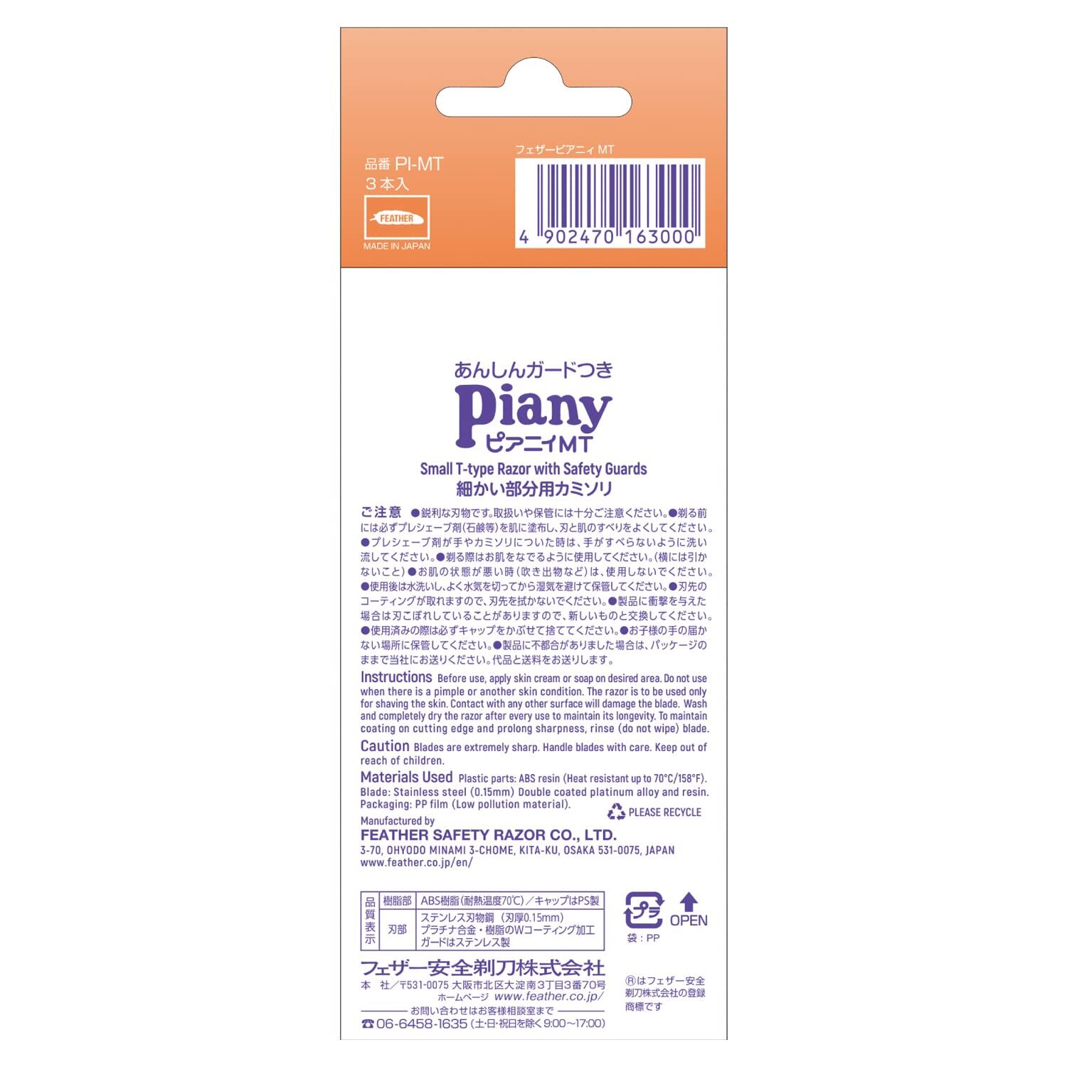 【最新商品】FEATHER(フェザー) ピアニィ ミニT 細かい部分用 ガード付 3本入 日本製 カミソリ レディース 顔 手の甲 指 3個 (x 1)