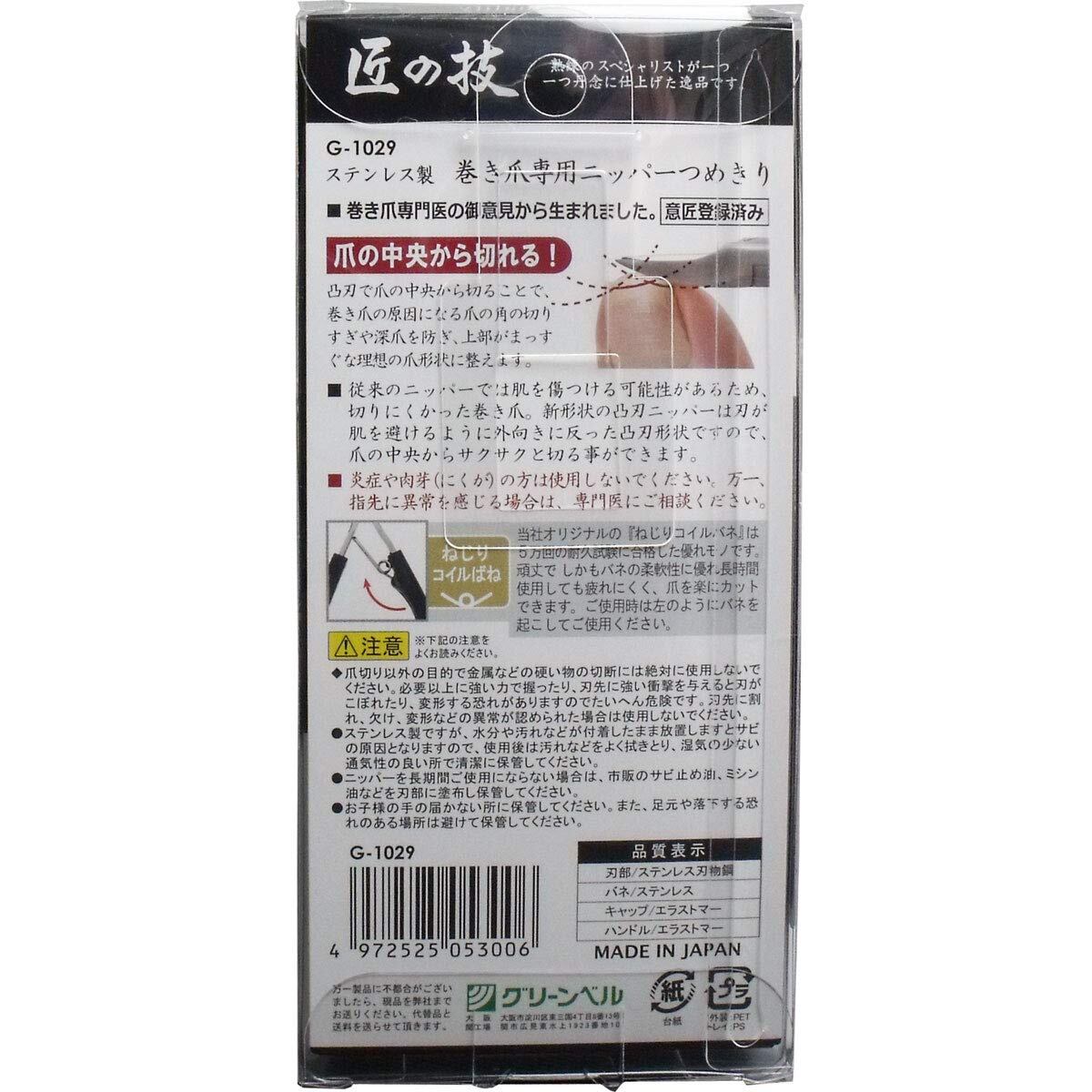 グリーンベル ステンレス製 巻き爪専用ニッパーつめきり