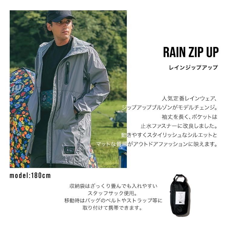 KiU【2024】キウ 軽量 雨対策 収納袋 持ち運び簡単 はっ水 防水 シンプル かわいい おしゃれ メンズ レディース 男女兼用 レインコート レインジップアップ カーキ K116-906