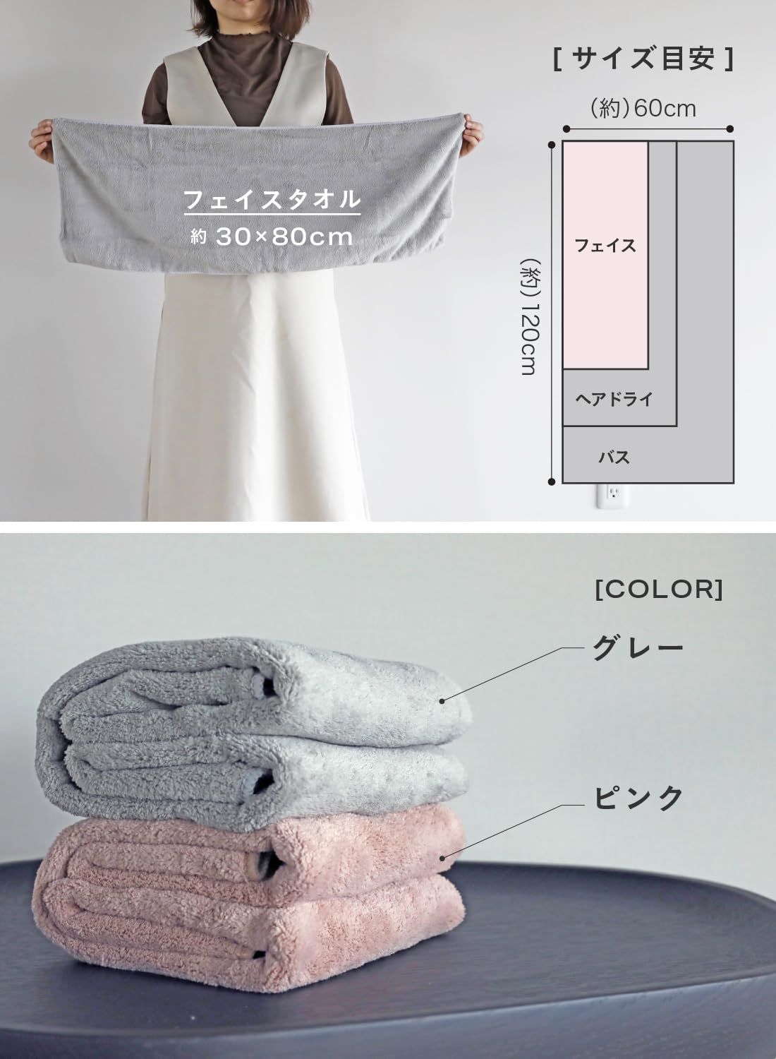 シービージャパン(CB JAPAN) carari(カラリ) フェイスタオル 吸水力[5倍]のマイクロファイバー DAY グレー 3枚組 繊維の隙間に素早く吸水 速乾 マシュマロ肌触り ふわふわもちもち 30×80cmカラリデイ