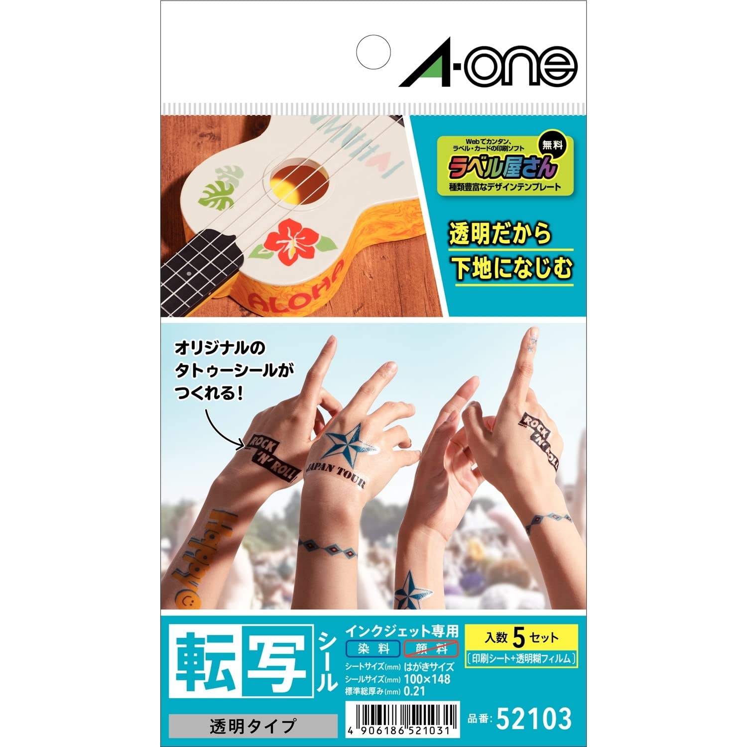 エーワン 転写 タトゥーシール 透明 5シート はがき 52103