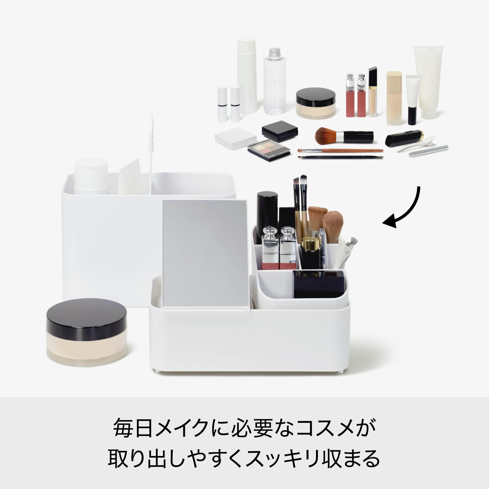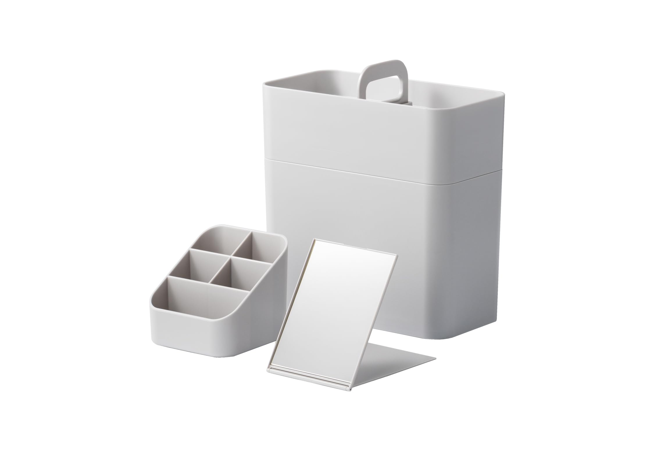 ライクイット (like-it) 収納ケース 洗面でも使いやすい メイクボックス 鏡付き 約幅11x奥21x高23cm グレー 日本製 コンパクト 持ち運びできる 幅11cm 鏡付き 時短メイク