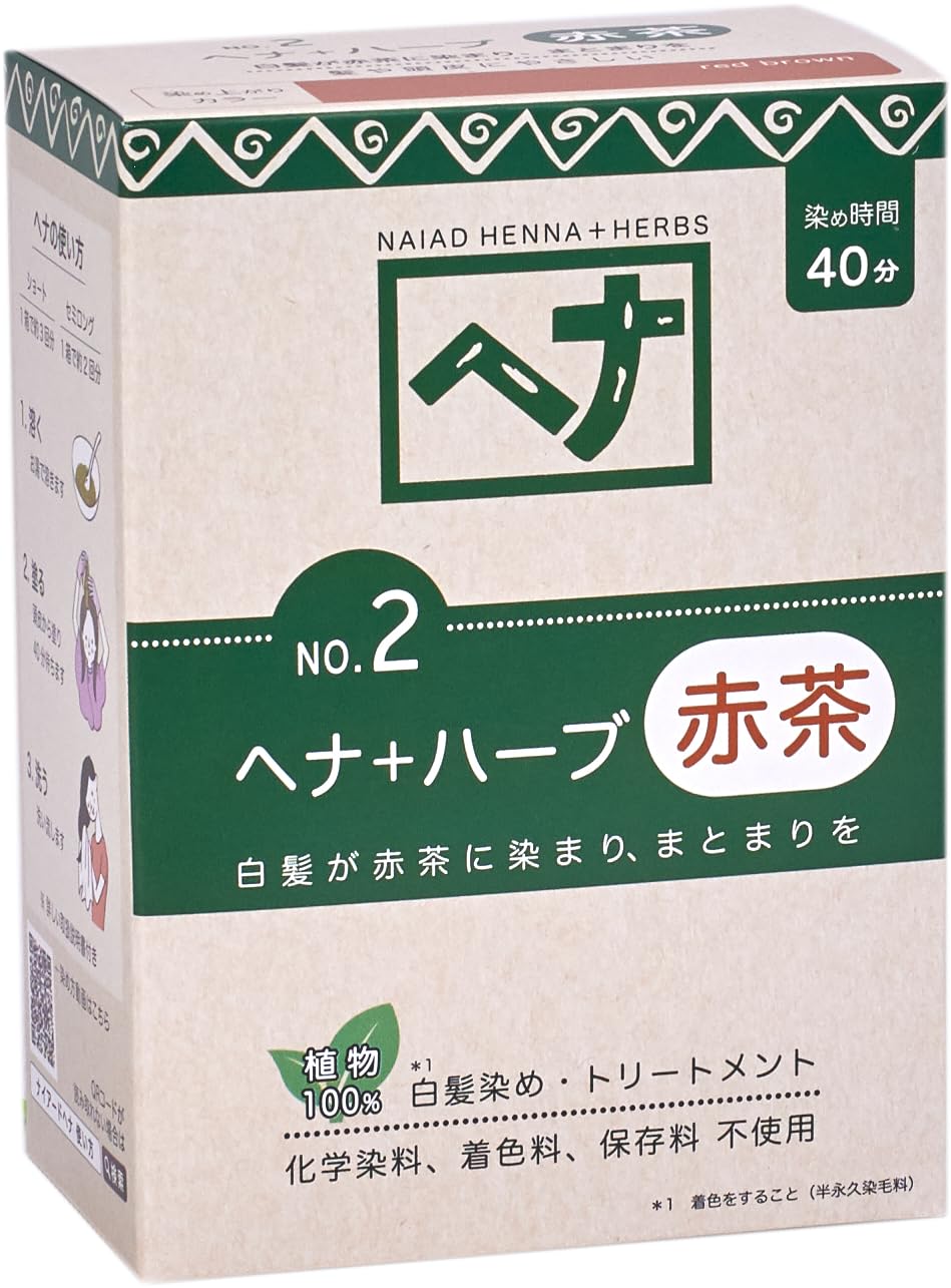 染める度に髪にツヤ・ハリ・コシを与える植物100%の白髪染め。ヘナは、染毛力とトリートメント効果を兼ね備える素晴らしいハーブです。世界各地で、古くから髪染め、ボディペイント、マニキュアなどに利用され、女性たちの髪や肌、爪を美しく彩ってきました。 ナイアードのヘナは、100%植物でつくられた自然素材の白髪染め。化学染料、保存料、着色料等の添加物を一切使用していません。