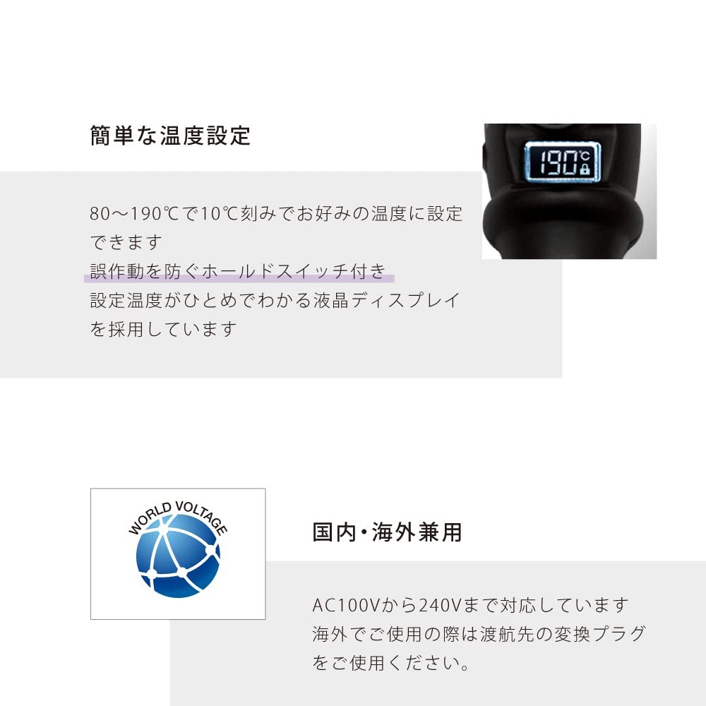 短時間で一気に巻ける。従来品よりも60mm以上も長いロングバレル。時短できれいなスタイリングバレルが均一に暖まり、思い通りのカールを一瞬で作ります。