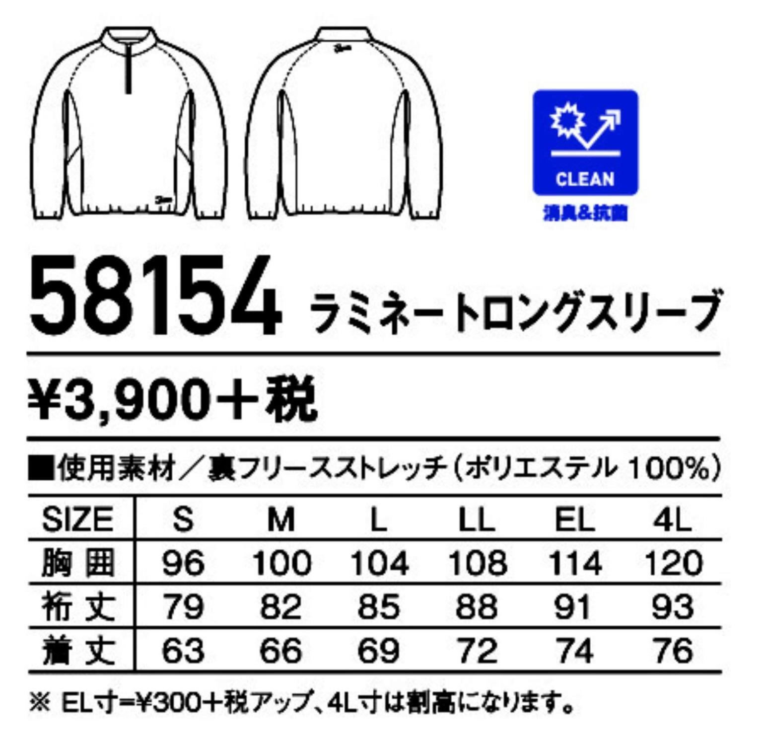 【新着商品】自重堂 JAWIN ラミネートロングスリーブ 58154 ブラック Mサイズ
