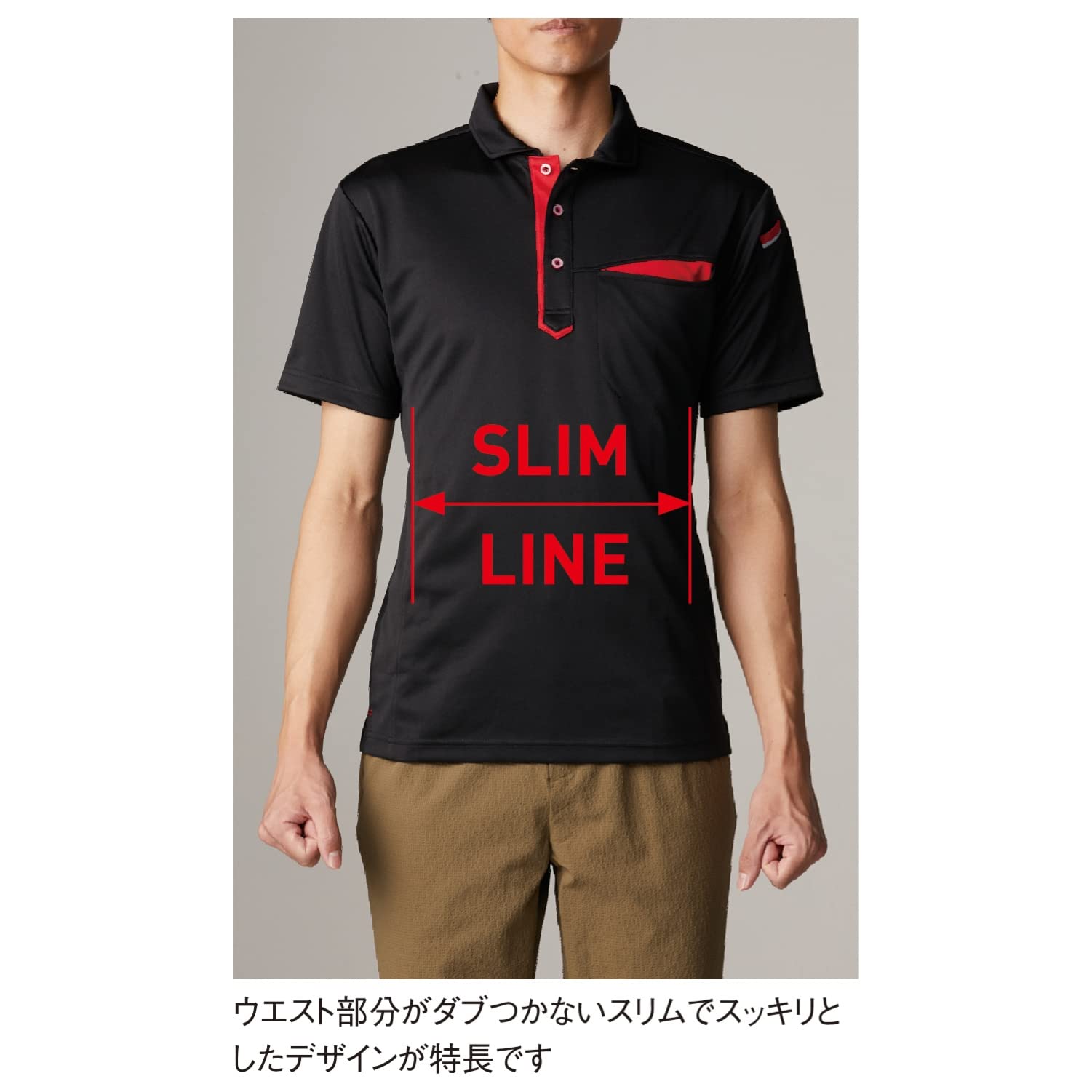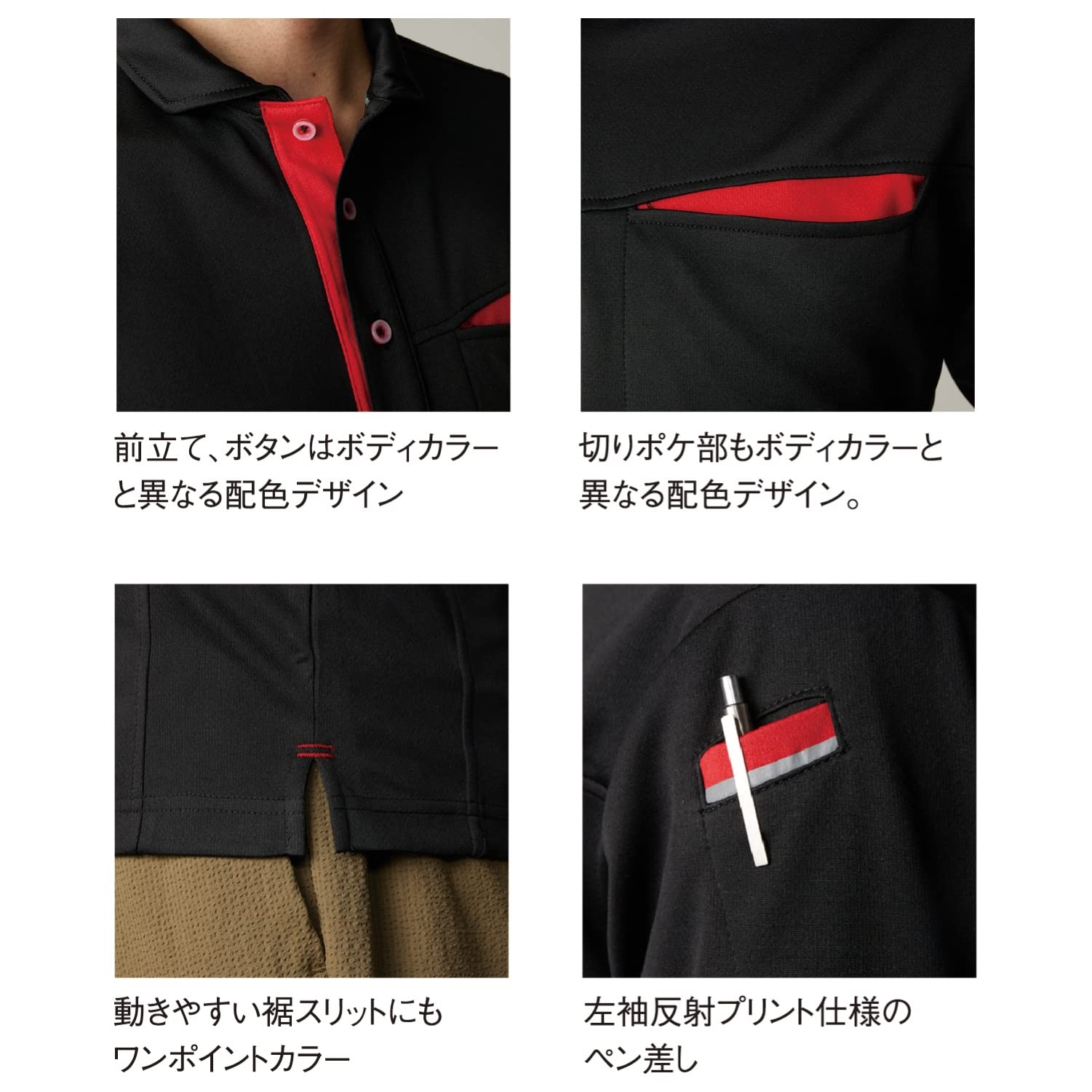胸ポケット・ペン差しポケット付き、裾/スリット入り、脇部消臭テープ付き