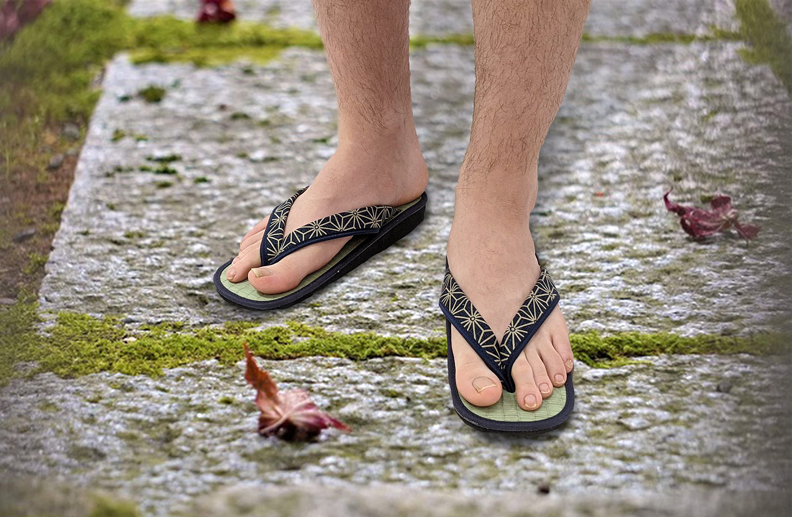 材質 鼻緒:綿、ナイロン 天板:国産い草、プレスボード、底材/EVA 適応サイズ:フリーサイズ(~28cm) カラー:麻の葉、青海波(せいがいは)、井げた