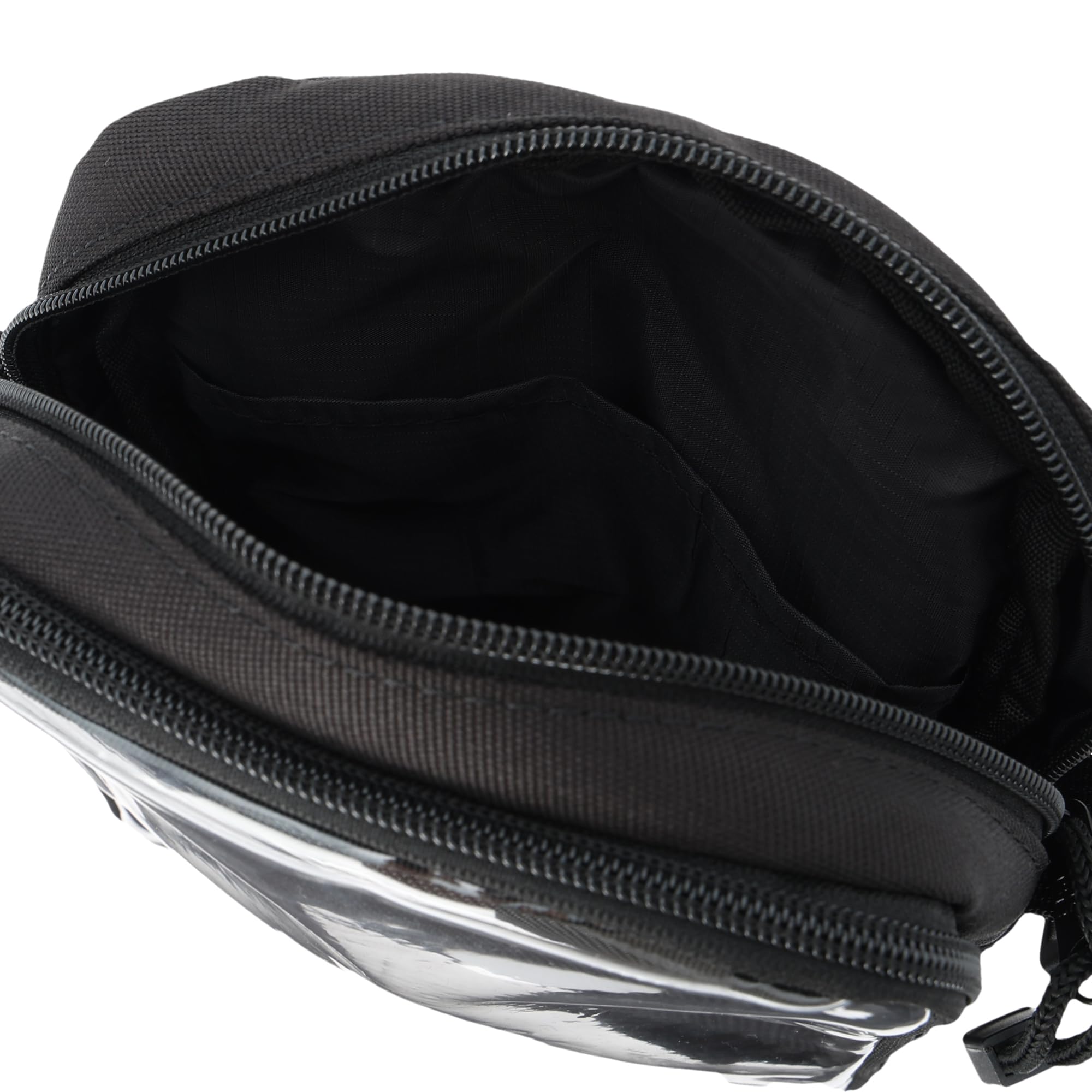 表から見ると普通のショルダーバッグ、背面が清涼感のあるクリア素材になっています。 クリア部分は大きく開きポケットの背面はメッシュになっていますので、バッジなどで自由にカスタム可能です。 ストラップが取り外し可能でショルダー、ポーチ両方で使い分けができるのでマルチなアレンジが可能です。 マチがしっかりあるので実用的にも◎ シンプルなデザインなので、カジュアルスタイルにも綺麗めスタイルにもおすすめです。