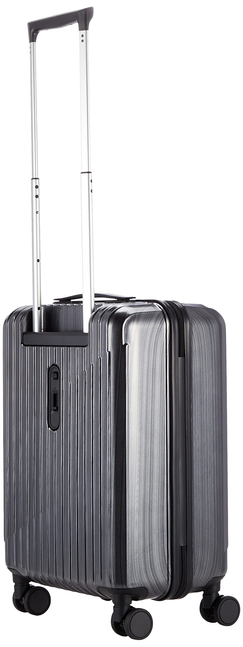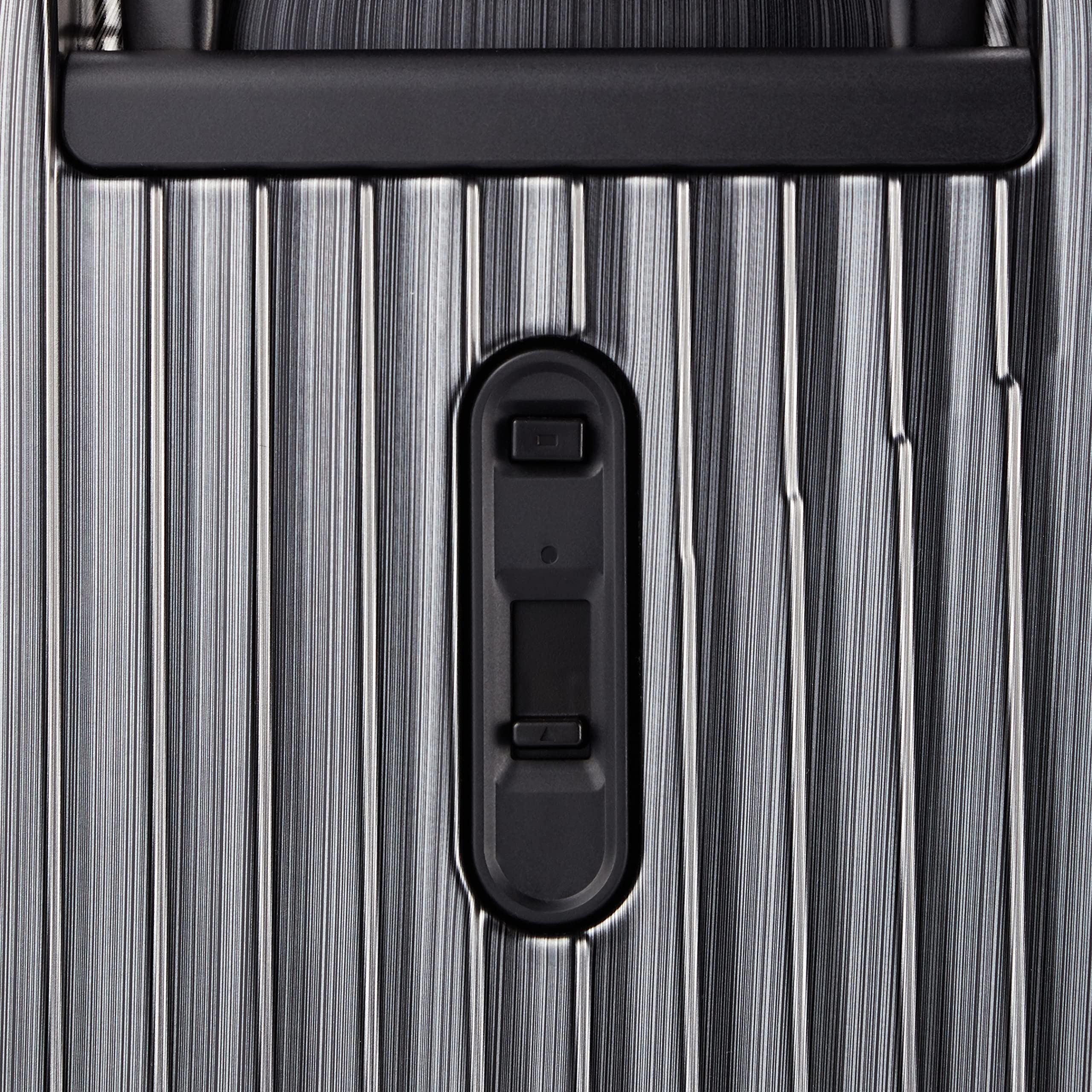 スタイリッシュなデザインのボディシェルとヘアラインの加工が施されたカラーが映える高級感のあるスーツケース。