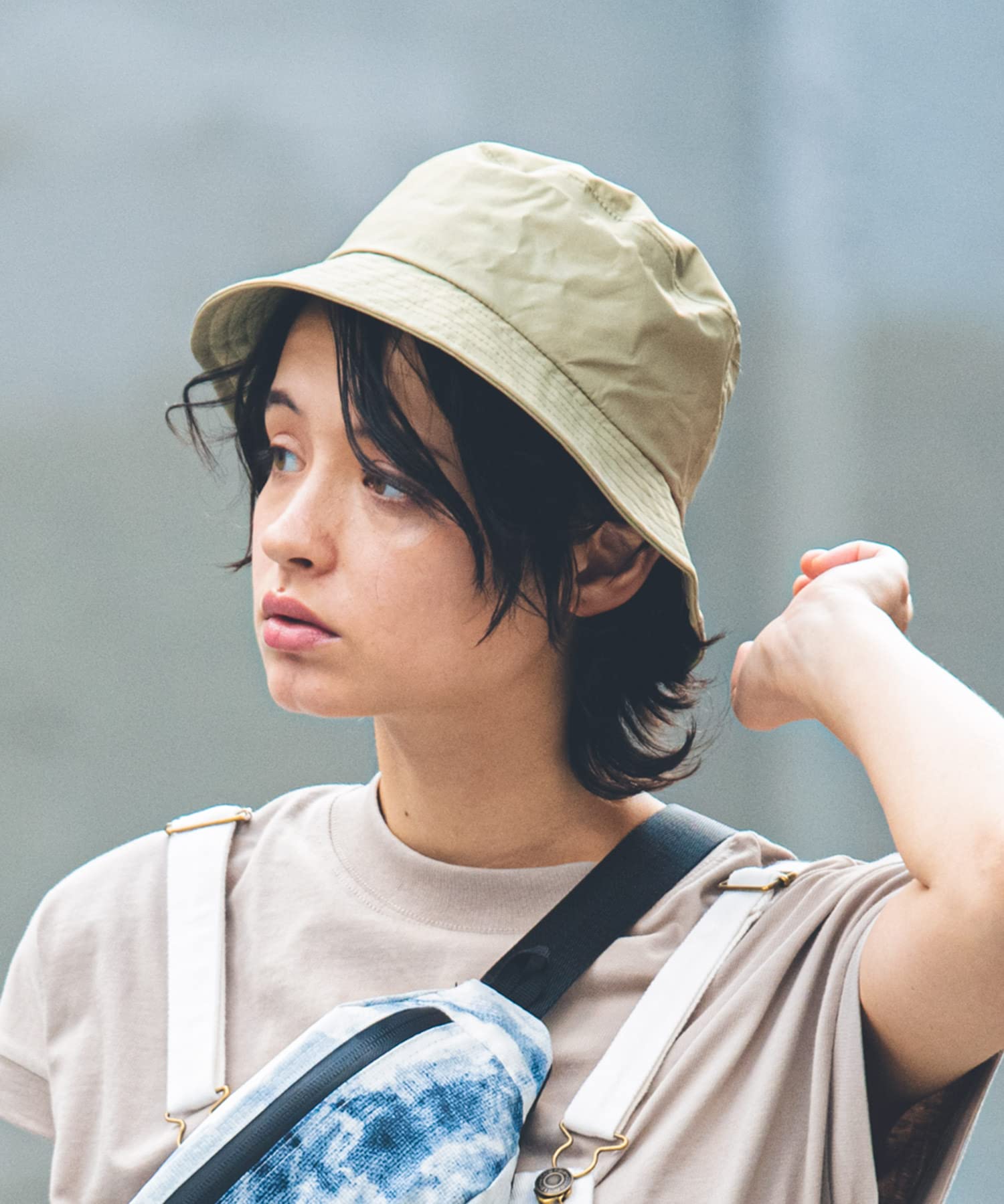 ・ハリのある生地を使用し、バケットハットの特徴であるシルエットをキープ。