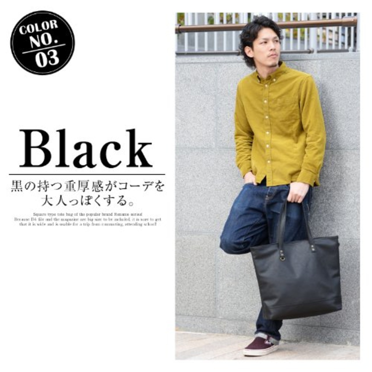 [リネーム] スクエア トートバッグ メンズ ファスナー付き A4サイズが入る 大容量 シンプル 斜め掛け 通勤・通学