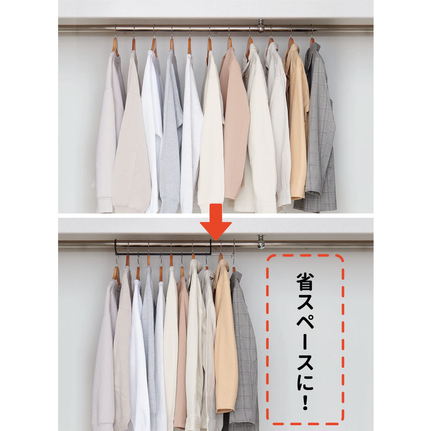 衣類の収納量アップ、吊るすだけの簡単設置。