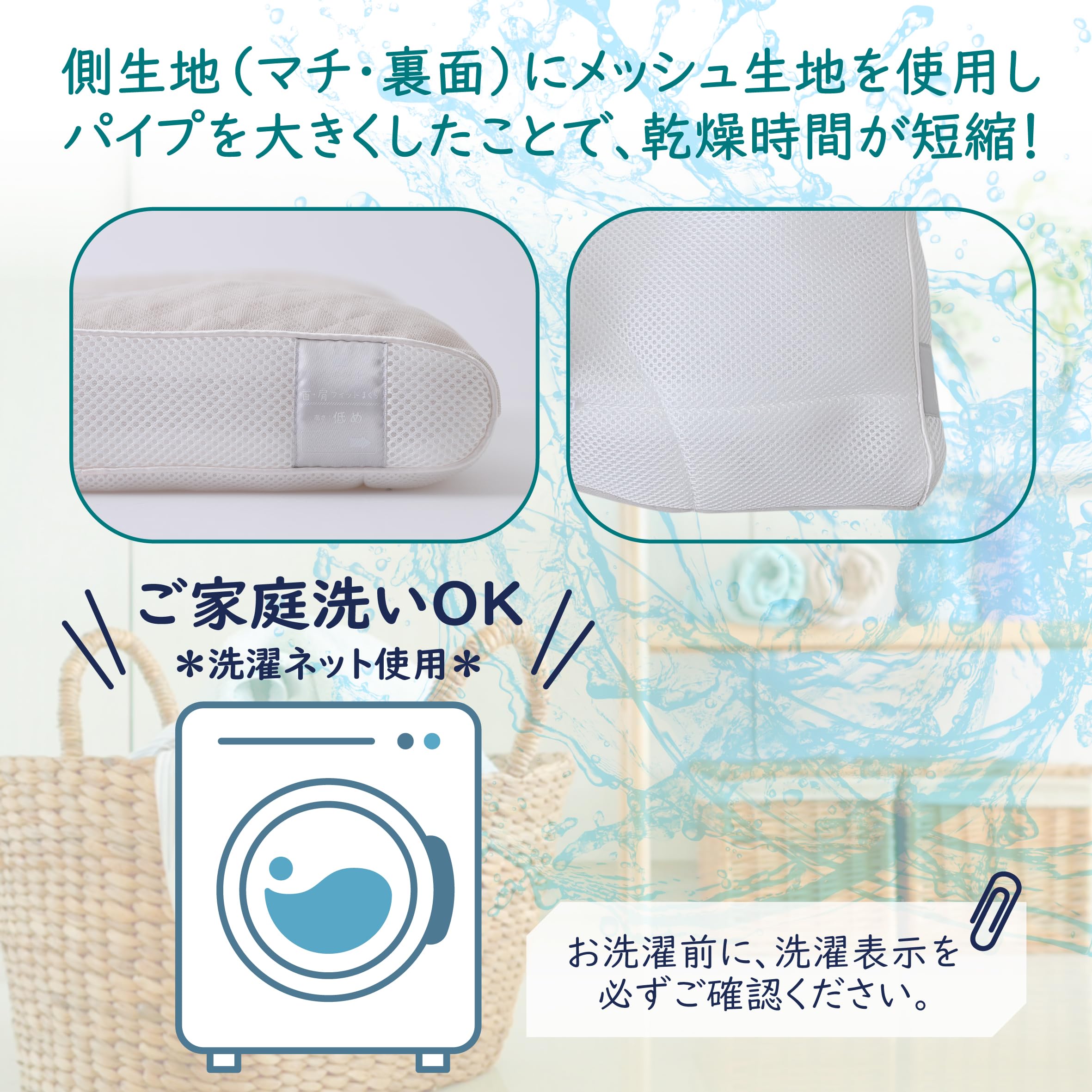 ◆通気性・弾力性のよいソフトパイプはこれまでのものに比べてサイズを少しアップ。マチ・裏地に通気性の良いメッシュ生地を使うことで、お洗濯のあとの乾燥時間が短縮!いつも気持ちよくお使いいただけます。