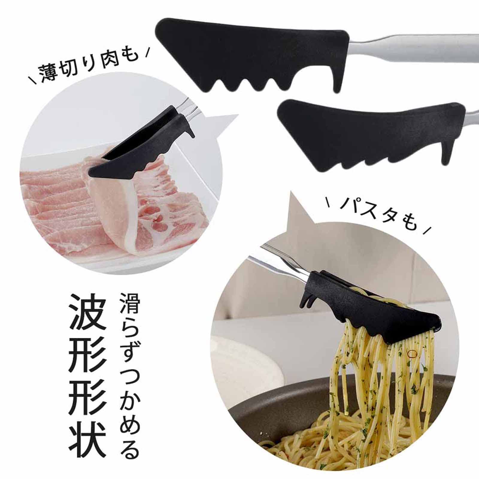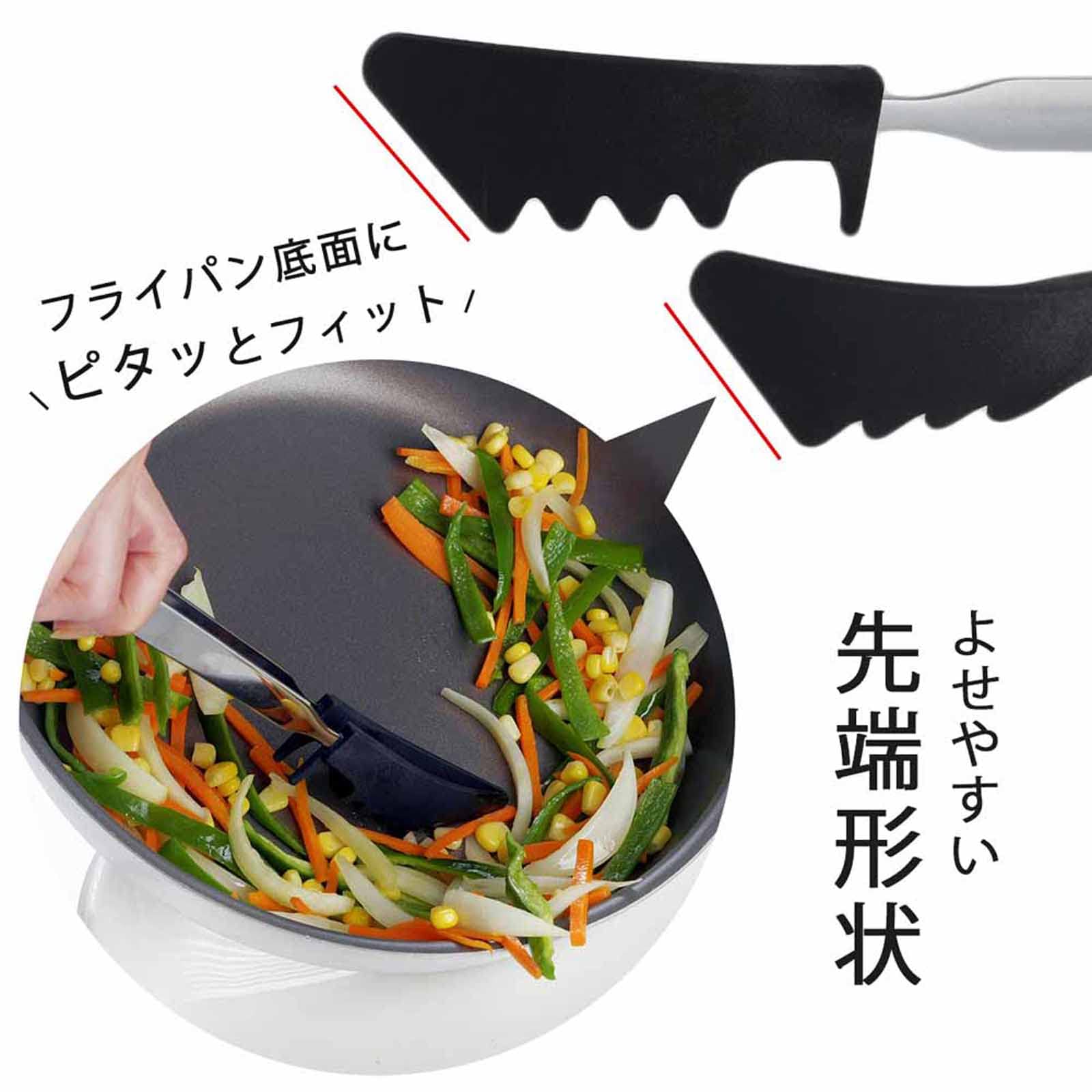 先端はフライパン底面にフィットして返しやすいフラット面と、麺類をつかみやすい波形状