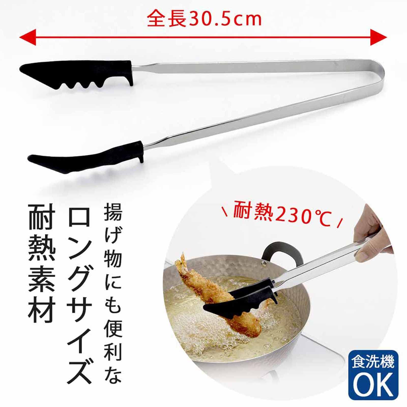 下村企販 持ち手が長くて炒めやすい キッチントング 【日本製】 食洗器対応 フライパンにフィット 先端がつかない 揚げ物調理OK 麺類もつかめる 全長30cm ママクック 燕三条 44341