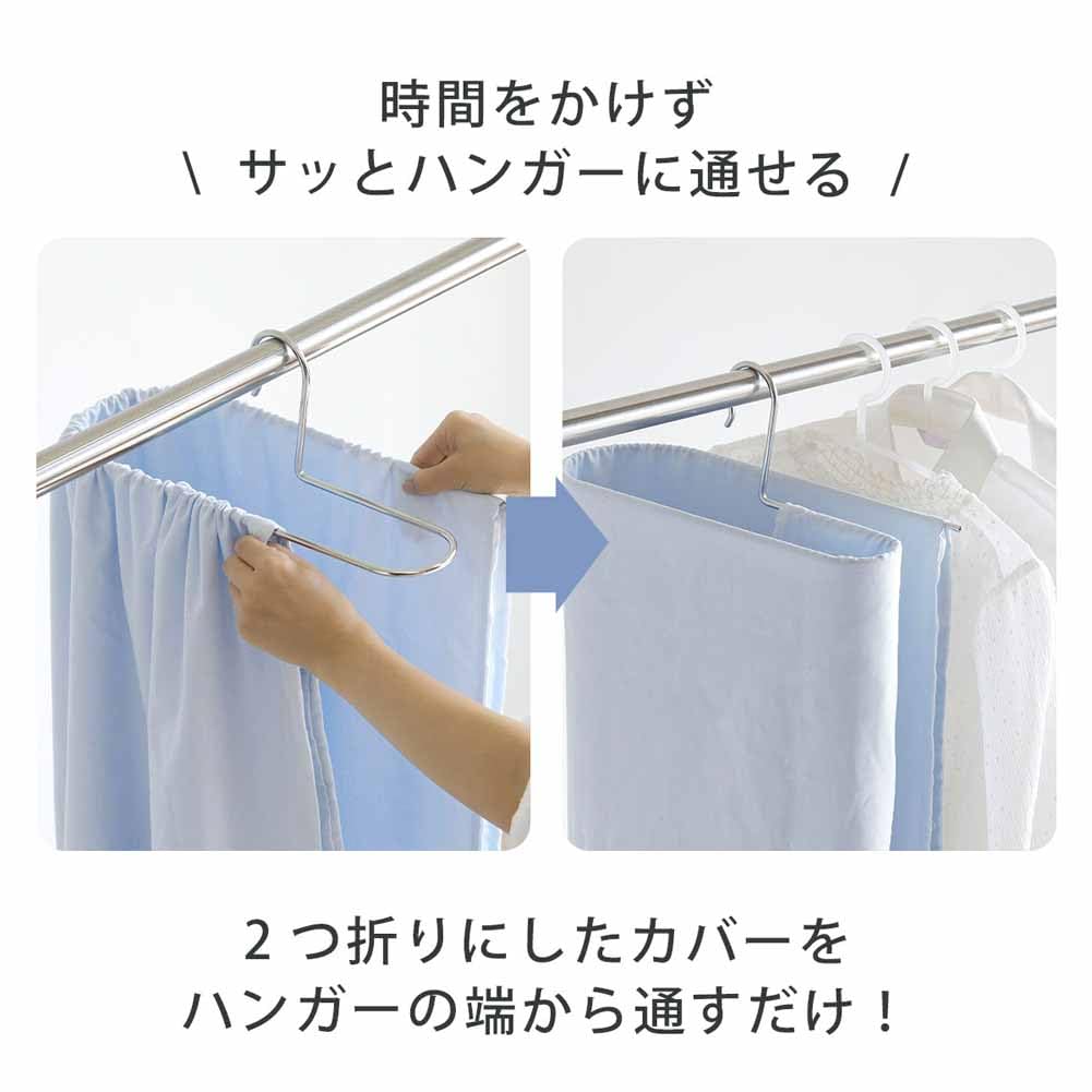 カバーを2つ折りにしてハンガーに通し、グルっと広げるだけ