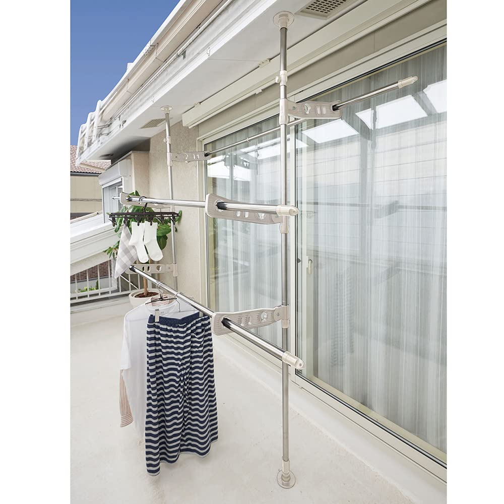 ベストコ ベランダ 突っ張り 物干し ステンレス 取り付け 幅9×奥行44~78×高さ220~300cm 3段タイプ ライトグレー NY-282